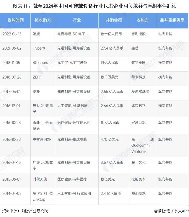4、可穿戴设备企业兼并重组情况