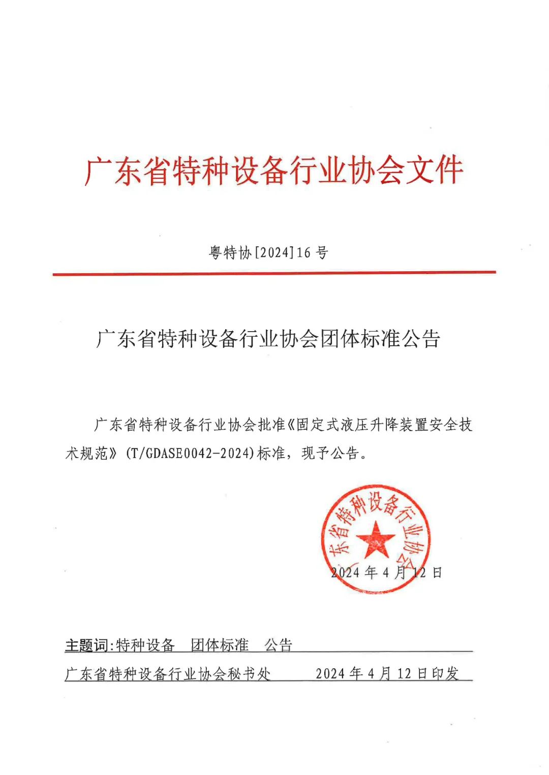 广东省特种设备行业协会团体标准公告