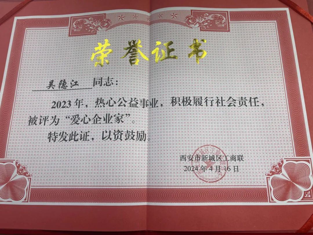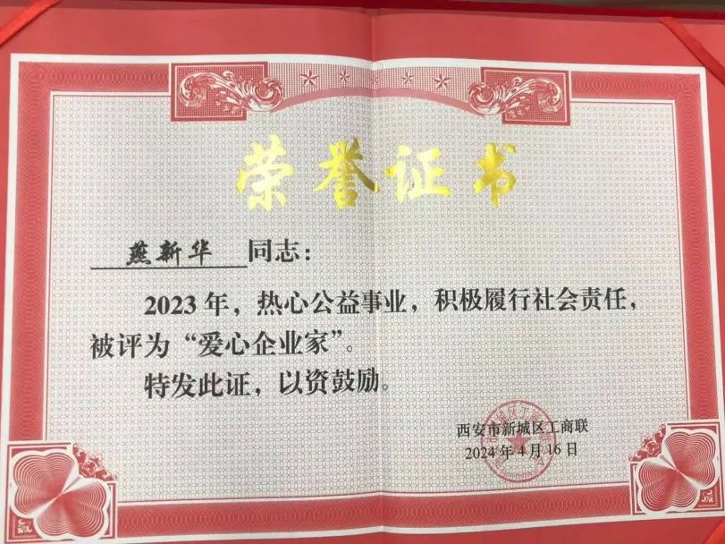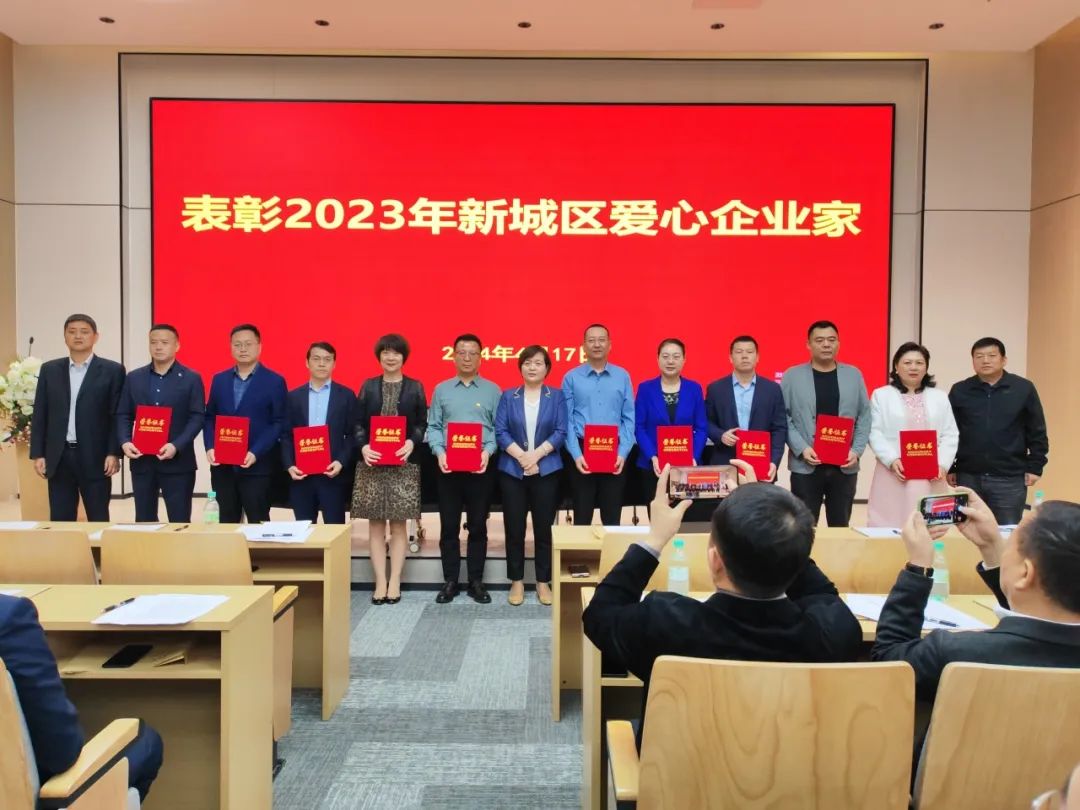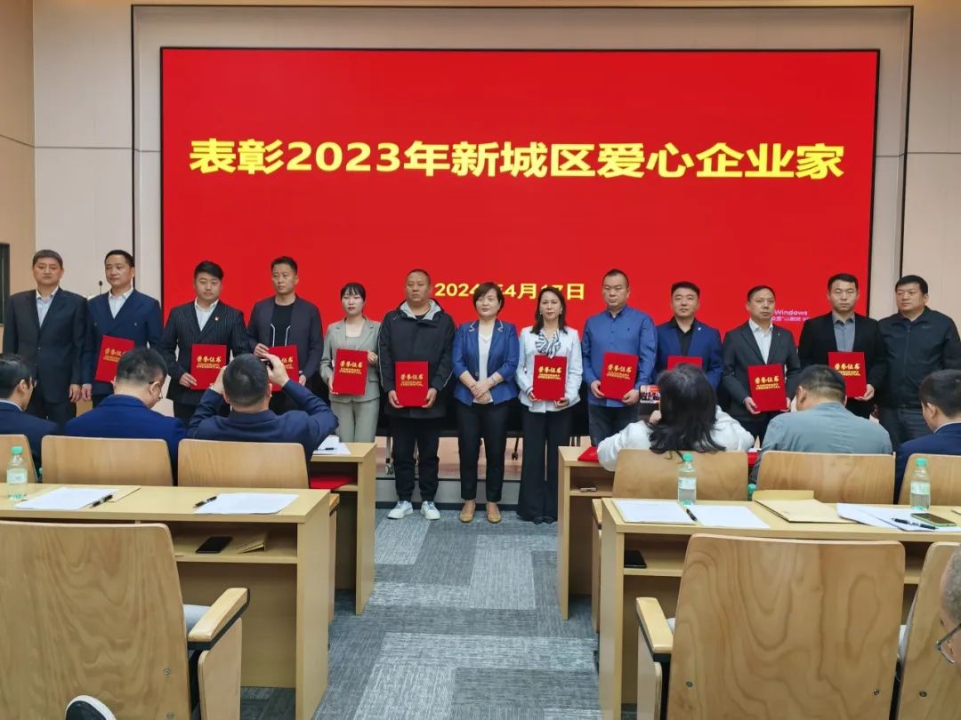陈部长、苏部长、庄书记为新城区二十位爱心企业家颁发荣誉证书。我会会长王海华、执行会长兼执行秘书长吴隐江、执行会长杨建国、监事长燕新华接受表彰。