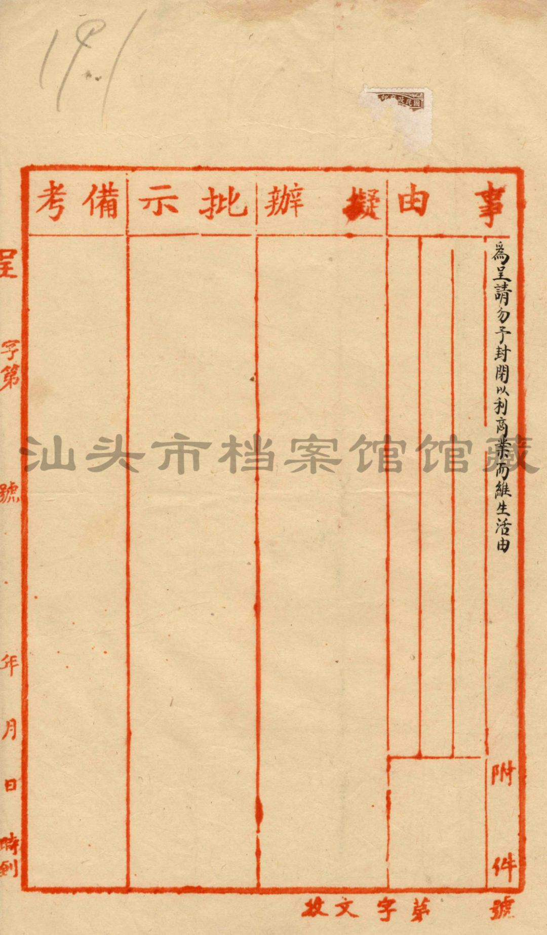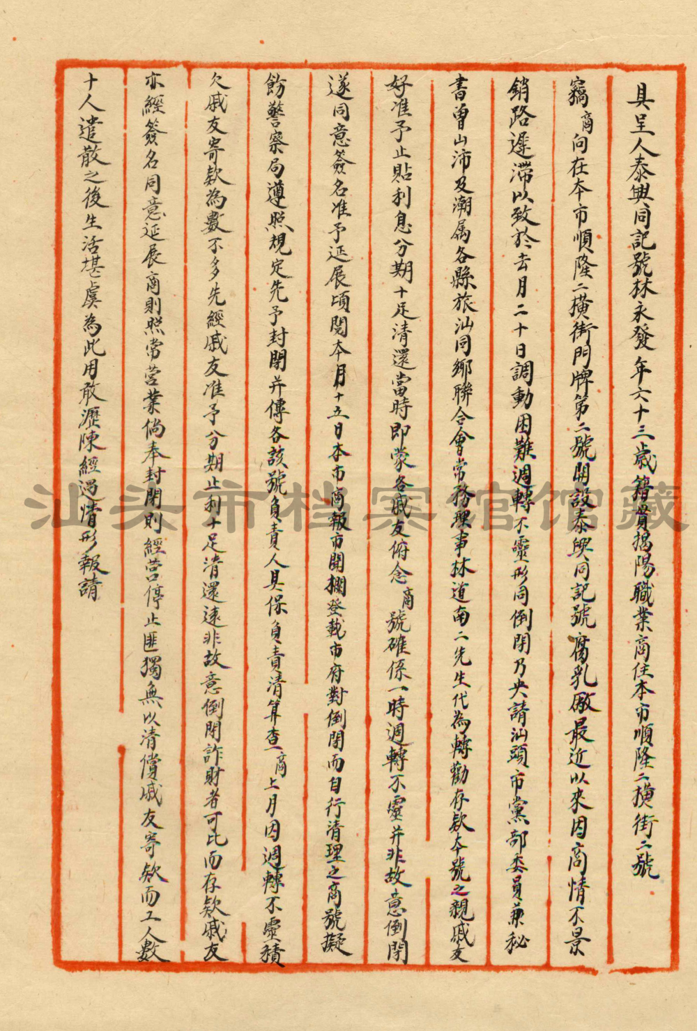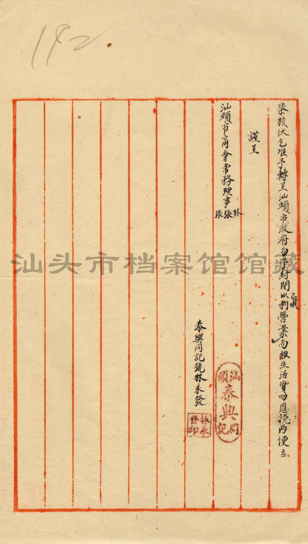 泰兴号关于呈请勿予封闭以利商业而维生活致汕头市商会的文