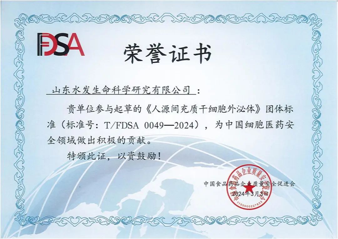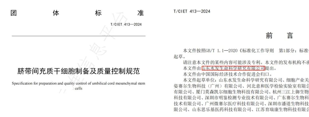 近日,山东水发生命科学研究有限公司主编的团体标准《脐带间充质干细胞制备及质量控制规范》(编号:T/CIET413-2024)、参编的团体标准《人源间充质干细胞外泌体制备与检验规范》(编号:T/FDSA0049-2024),分别经中国食品药品企业质量安全促进会、中国国际经济技术合作促进会审定通过,正式获批发布。