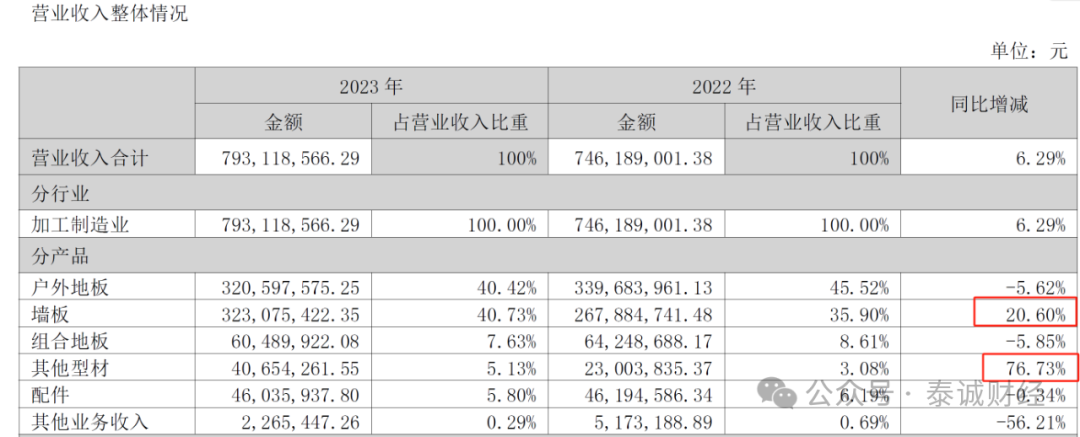 分产品来看,墙板和其他型材在2023年收入大幅增长,同比分别增加20.60%与76.73%。