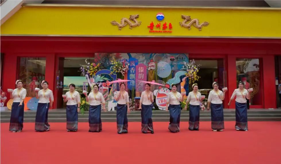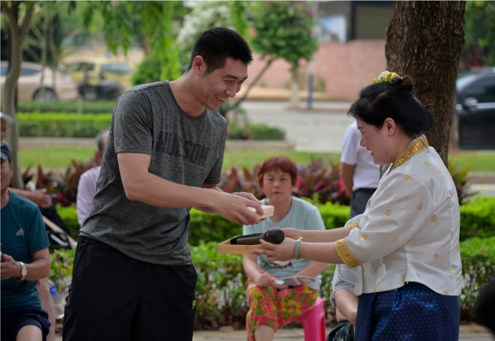 工作人员还表演了当地傣族传统节日的取水仪式,向到场的嘉宾洒水表示祝福,欢迎各位来宾。