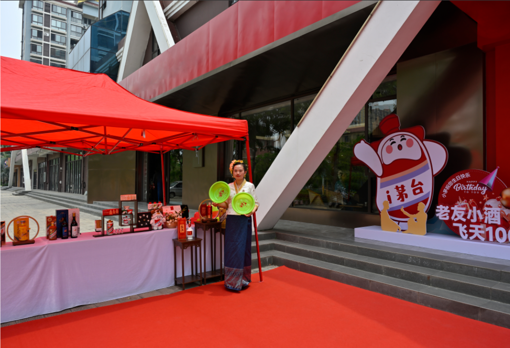 活动伊始,专卖店工作人员与茅粉们一起为活动预热,在i茅台APP推广区域,邀请过往行人下载注册i茅台APP,实名认证通过即赠送印有小茅表情的泼水盆。