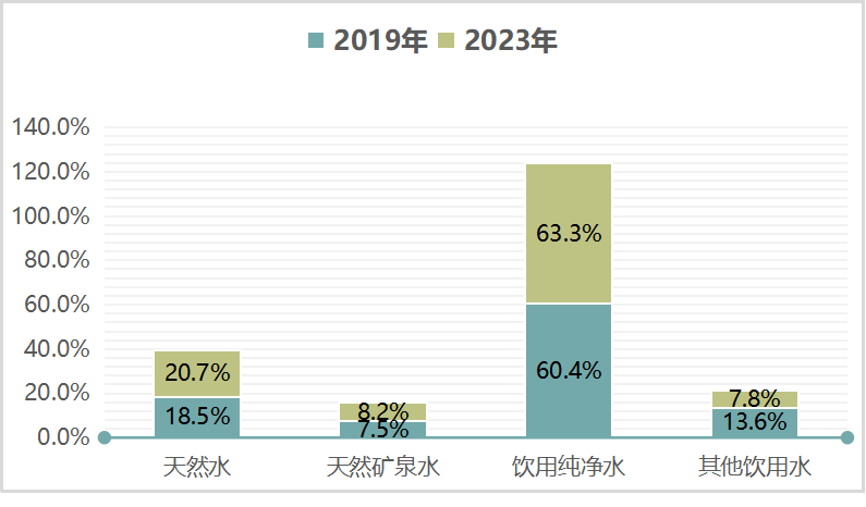 中国包装饮用水结构占比(2019-2023年)