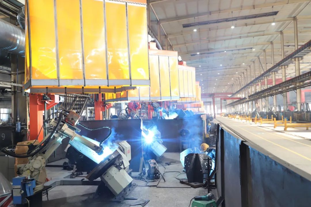 重庆瑜煌全体干部员工始终以实际行动扛红旗、走在前、争第一,在工程建设中科学排产、挂图作战,紧盯关键工艺工序和重要时间节点。根据青海地域环境,结合铁塔挂点、塔脚等重点部位焊缝等级要求,考虑到工程焊接量大、工艺要求高的情况,采用性能稳定、柔性化程度高、可达面积大及作业效率高的机器人开展塔脚焊接,最终等级焊缝均实现一次性通过,以优质产品和高效服务为工程早日投产作出了有力支撑。