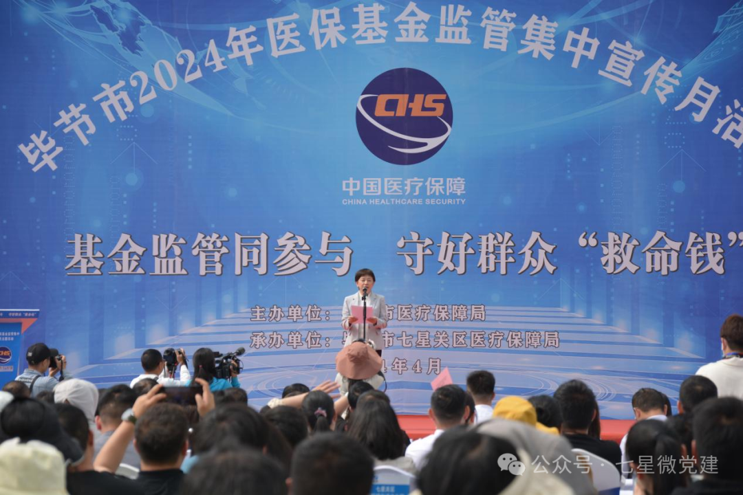 为深入推动定点医药机构强化行业自律,倡导医务人员诚信守法,进一步营造全社会共同维护医疗保障基金安全的良好氛围。4月17日,以“基金监管同参与 守好群众‘救命钱’”为主题的医保基金监管集中宣传月现场宣传活动在爱民广场举行。市政府副市长万艳,市医疗保障局局长马祥宏,七星关区人大常委会副主任沈颖出席活动。