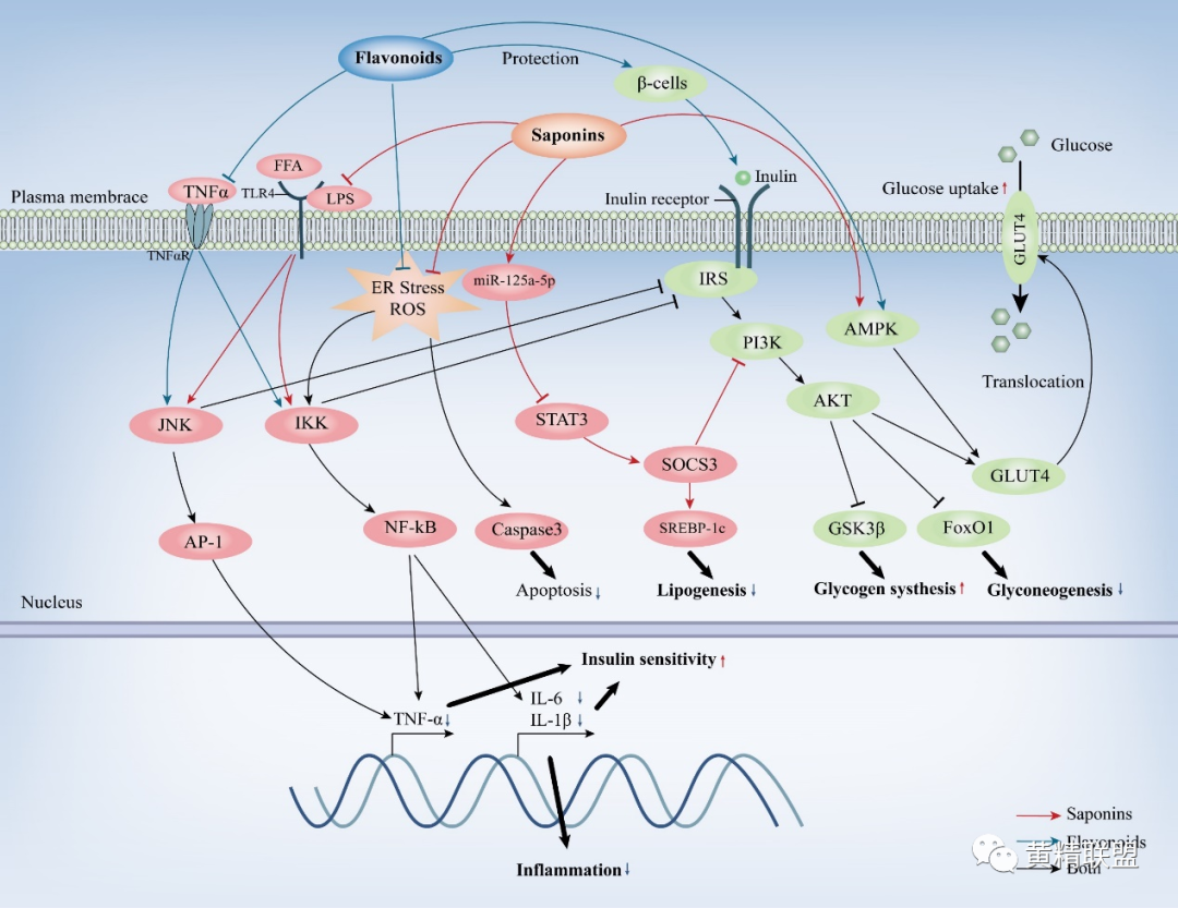 图4黄精黄酮和皂苷类化合物的血糖调节机制