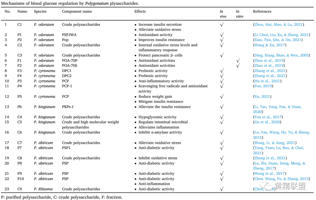 表1 黄精多糖调节血糖的机制