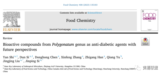 2023年浙江农林大学斯金平教授团队在国际期刊《Food Chemistry》(JCR一区,IF=9.231)上发表题为“Bioactive compounds from Polygonatumgenus as anti-diabetic agents with future perspectives”的高水平综述。系统地综述了黄精属植物在抗糖尿病中的应用,重点介绍了黄精属植物多糖、黄酮类化合物和皂苷的抗糖尿病潜力。探究了其在预防肥胖型糖尿病、改善胰岛素抵抗、促进胰岛素分泌、调节肠道微生态、抑制晚期糖基化终产物(AGEs)积累、抑制碳水化合物消化吸收和调节糖异生等方面的作用机制。此外,还提出了一个包括饮食(辅粮)、医学营养疗法(MNT)和新药的研发计划,为天然植物在糖尿病防治中的应用提供新的途径。