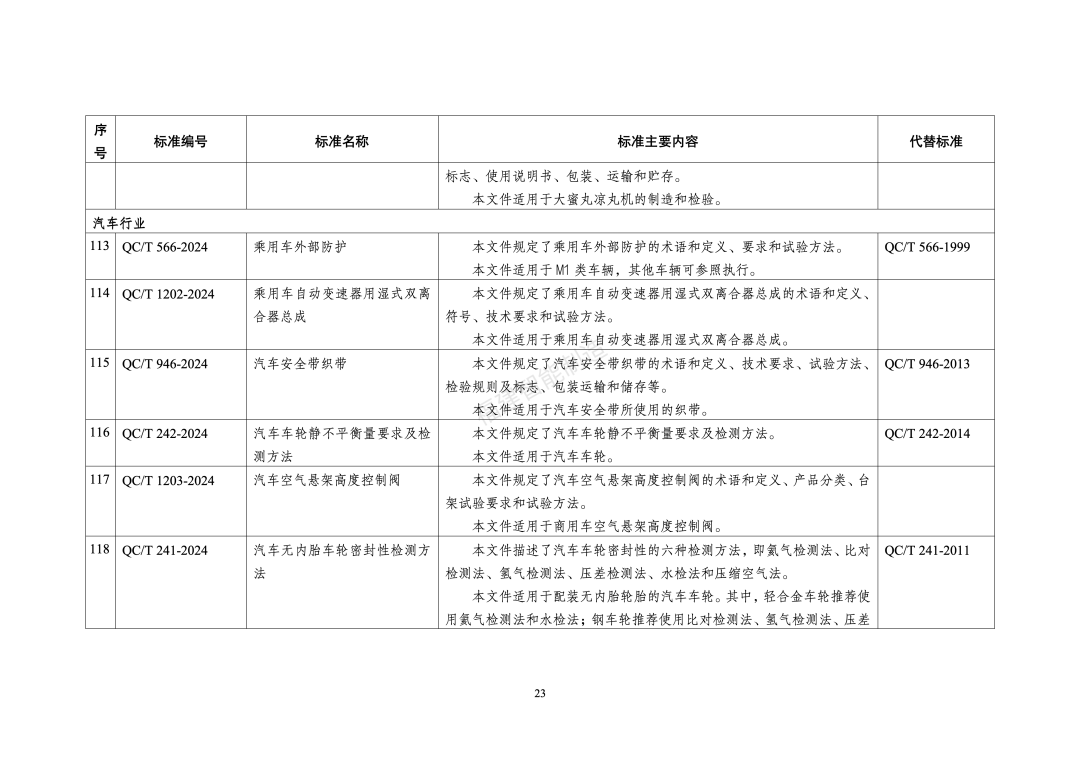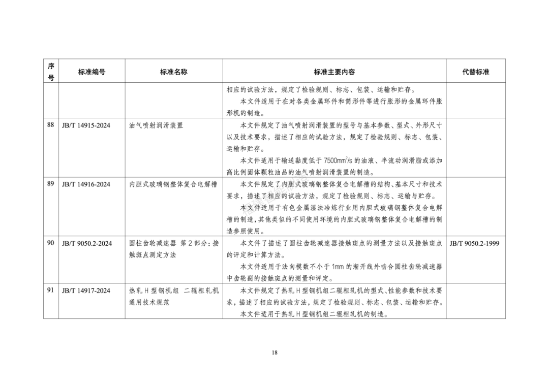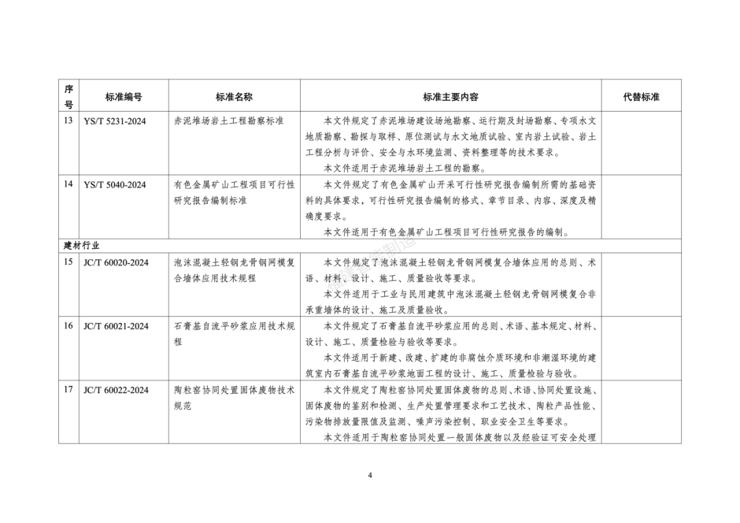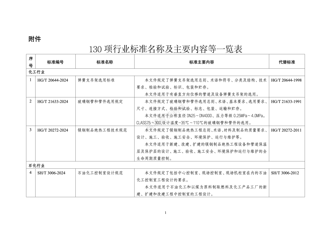 130行业标准名称及主要内容等一览表
