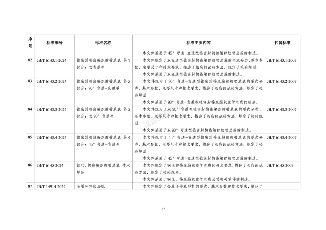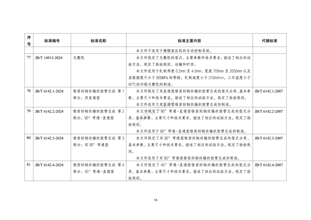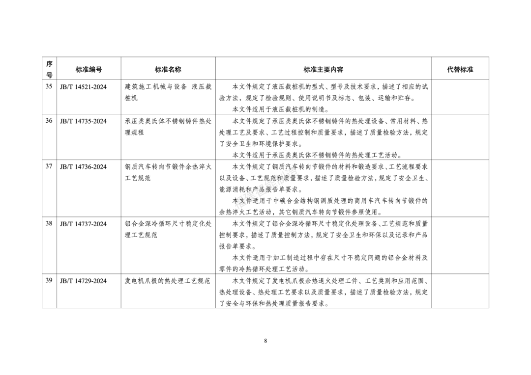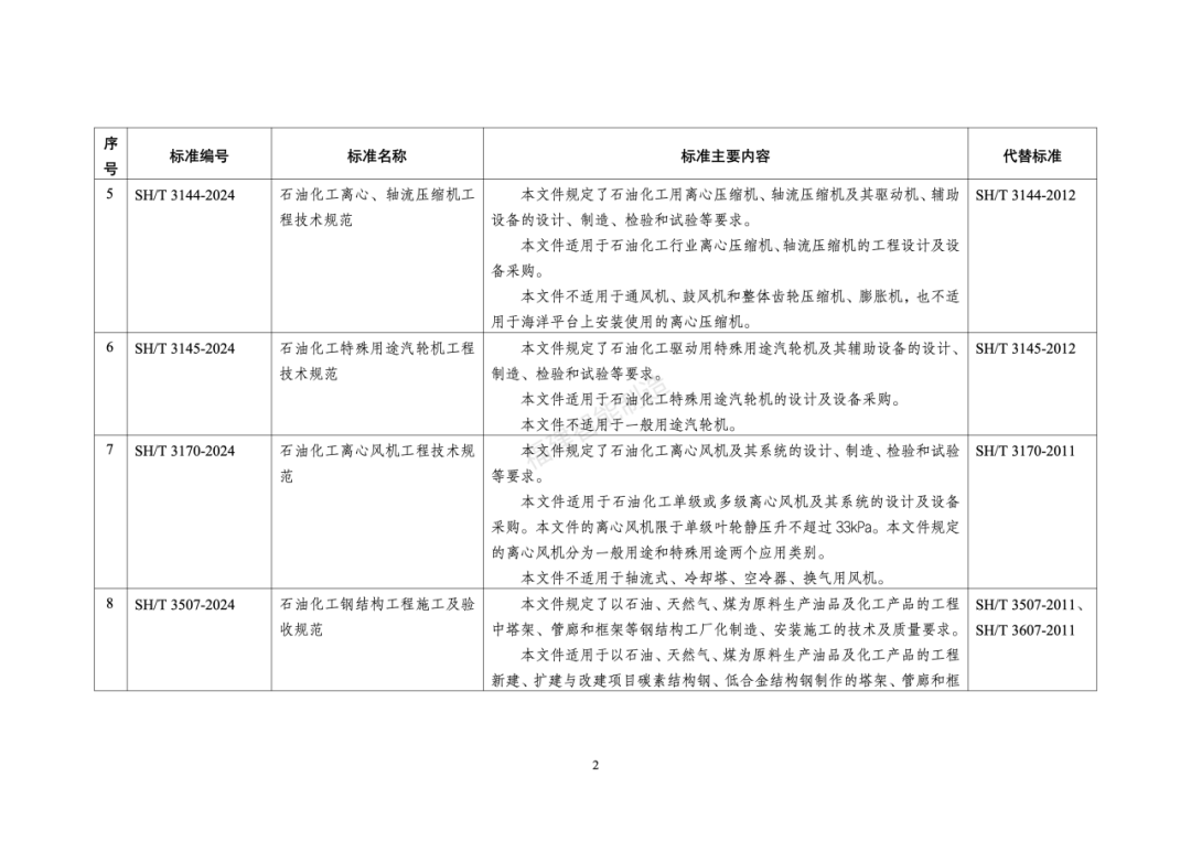 130行业标准名称及主要内容等一览表