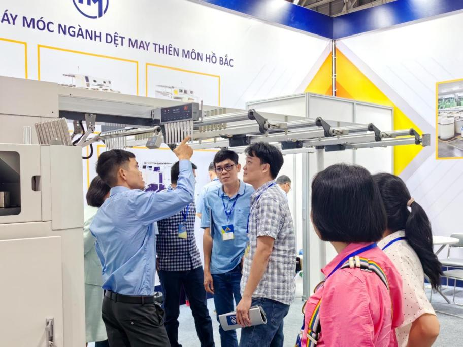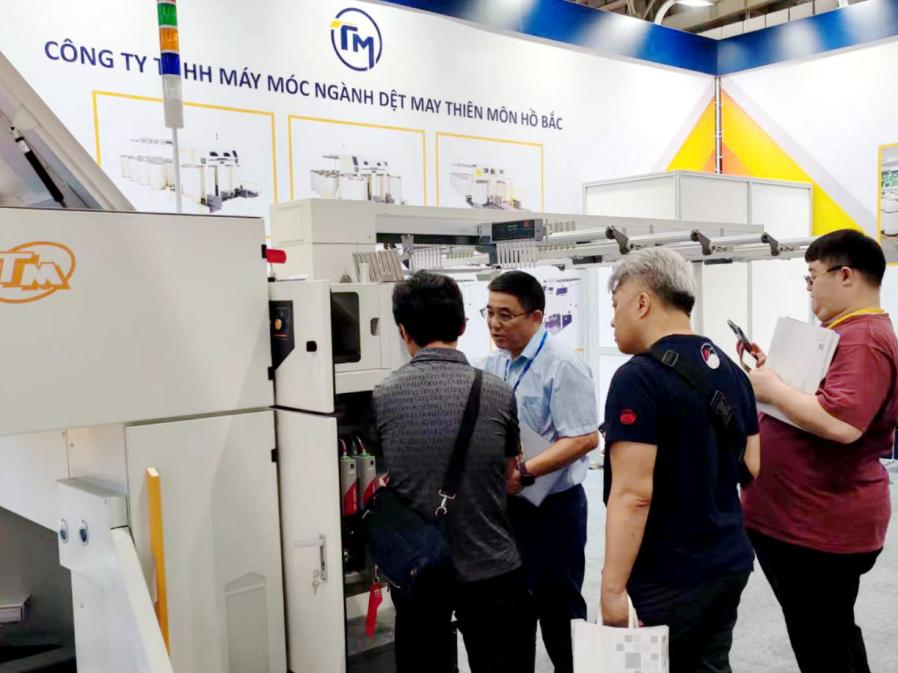 展会期间,越南PHU BAI、BROCSTEX、TPP TEXTILE、PHONG PHU、VICOTEX等多家纺织企业莅临天门纺机展位进行参观交流,对天门并条机赞许有嘉,评价其出条成形好,效率高,且性能稳定,节能降耗。前期的一些用户也来到现场考察,商讨继续合作的意向。