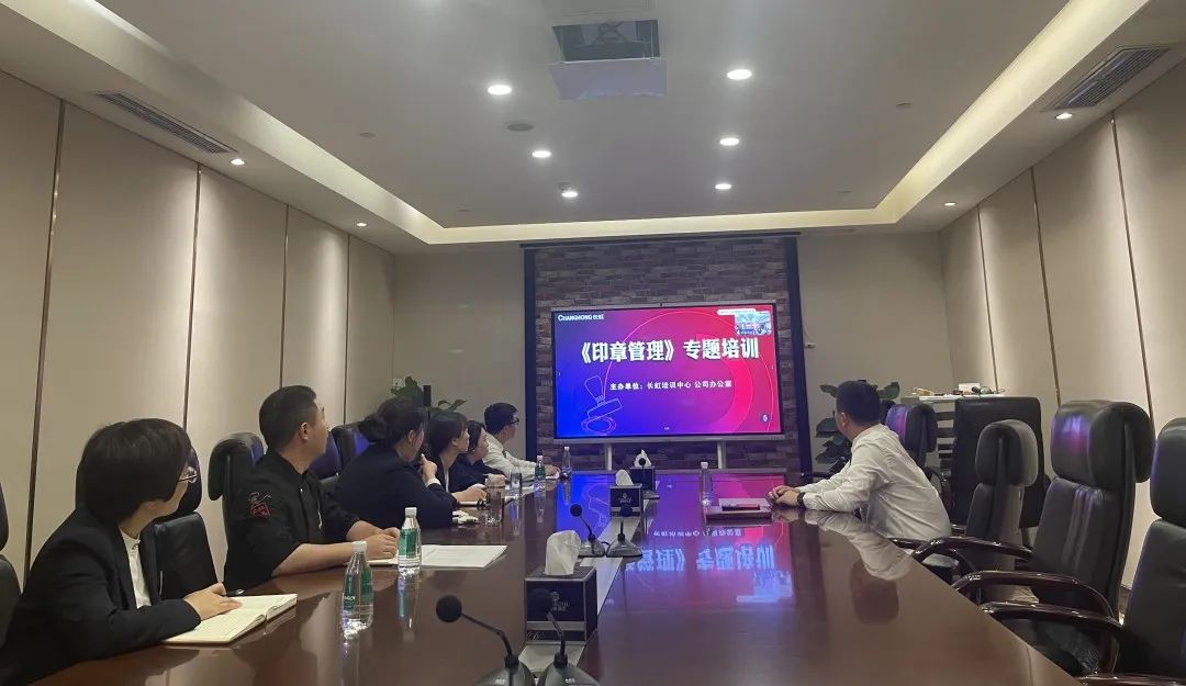 为进一步加强长虹控股集团印章管理,规范用印流程,明确用印责任,4月16日,长虹培训中心联合公司办公室开展《印章管理》专题培训,由公司办公室主任张涛、机要主管唐春兰主讲。此次培训采用线上与线下相结合的方式进行,控股集团及股份公司平台部门负责人、子公司负责人、首席合规官、印章事务分管领导、专兼职印章管理人员等200余人参加培训。