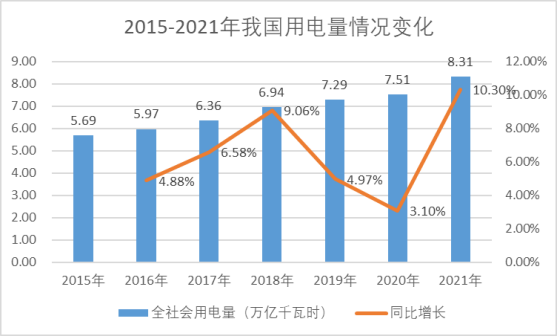 2015年至2021年我国用电量变化情况如下: