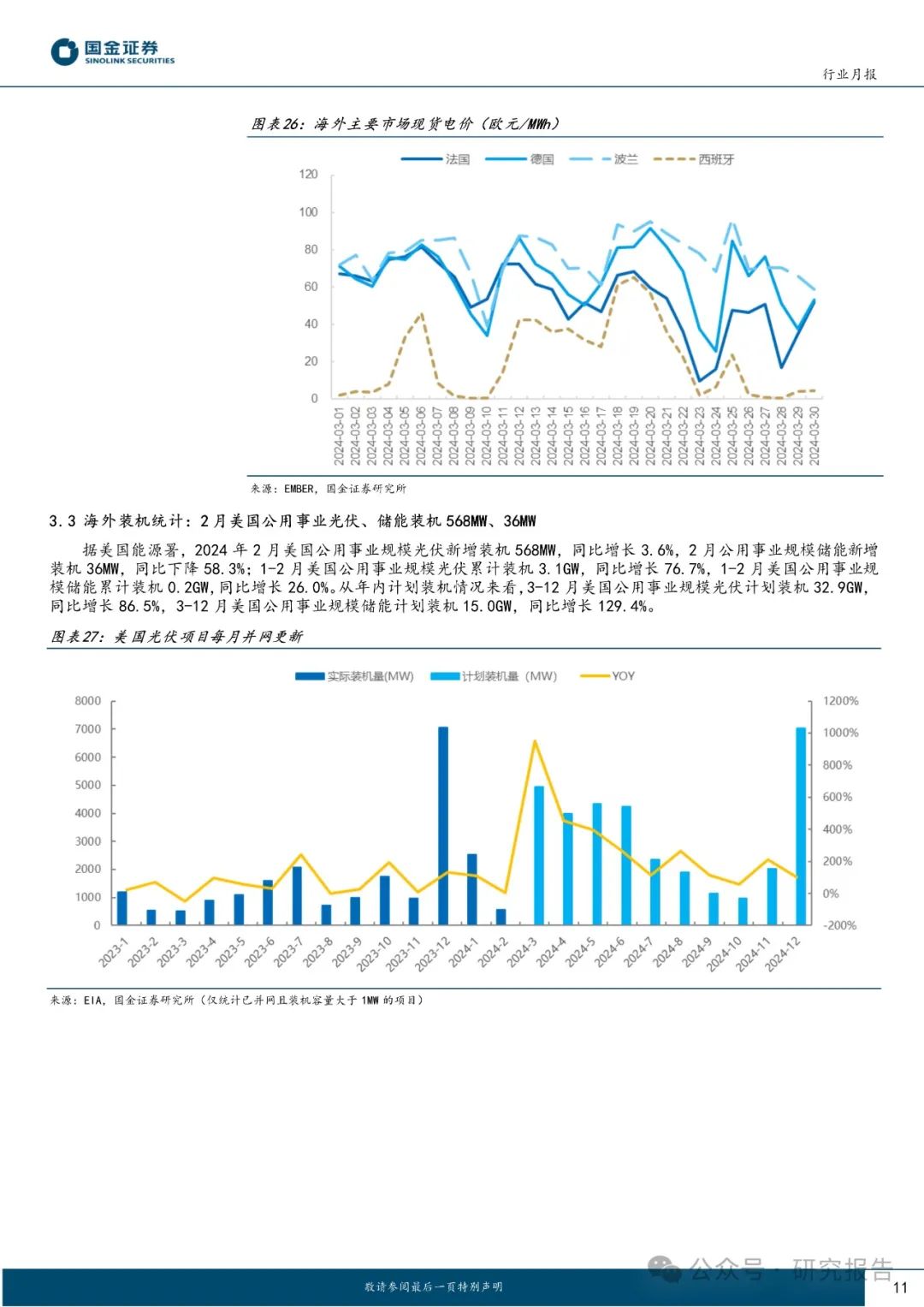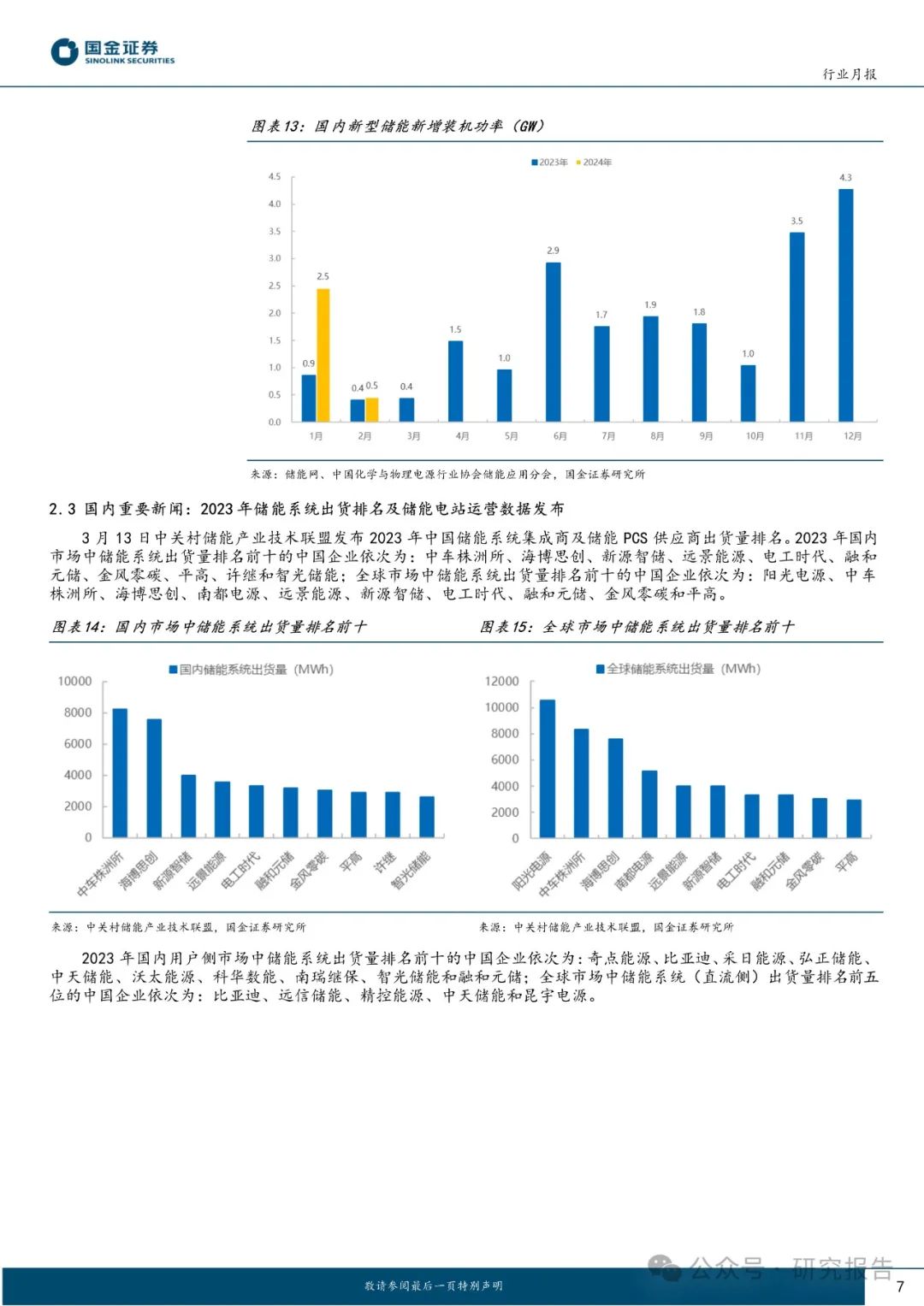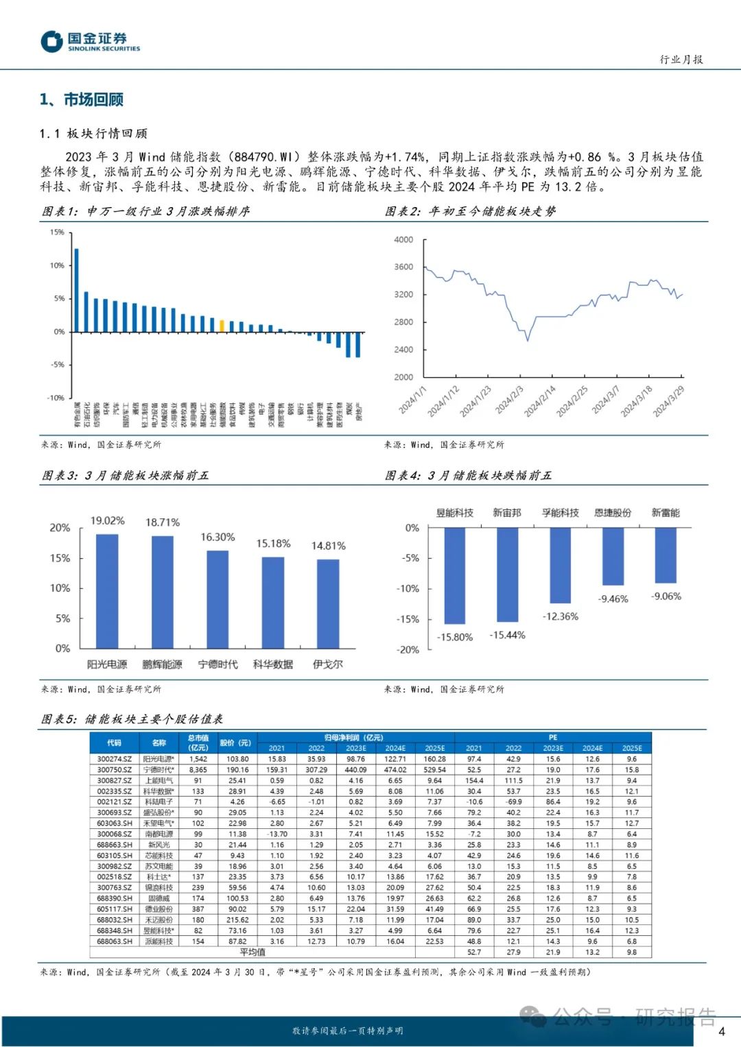 因此 3 月碳酸锂价格小幅反弹。据不完全统计,3 月国内锂电池储能系统中标项目为 2.6 GWh,同比增长 26.4%,中标项目主要为风光项目配储以及独立/共享储能。2024 年 1-3 月国内锂电池储能系统累计中标规模超 6.8GWh,同比增长 112.4%。