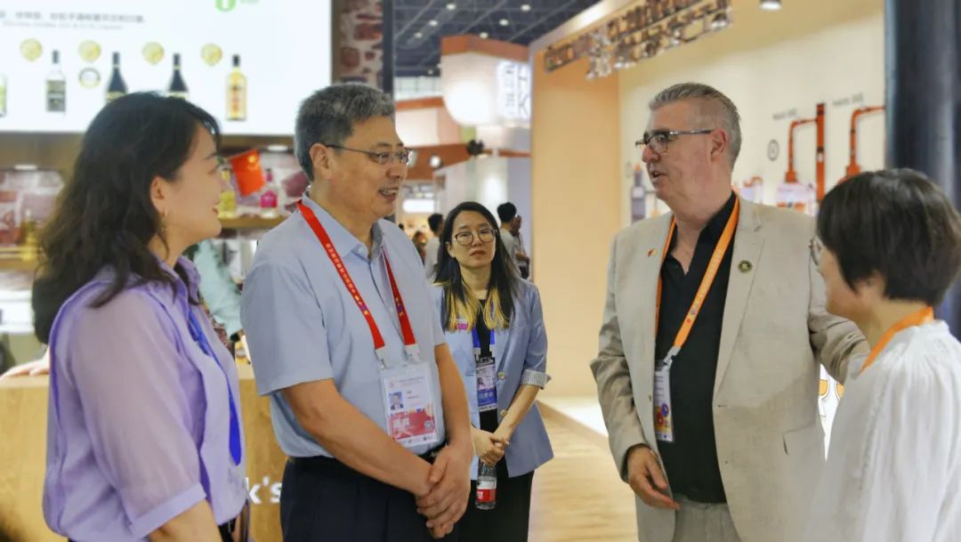 在4号馆,王磊参观本届主宾国爱尔兰展区,与爱尔兰驻华大使馆商贸参赞乔柯汀进行深入交流,了解参展商对于进口商品保税仓的仓库选择、物流管理等方面的工作情况,并向参展商热情介绍海南自由贸易港相关政策。