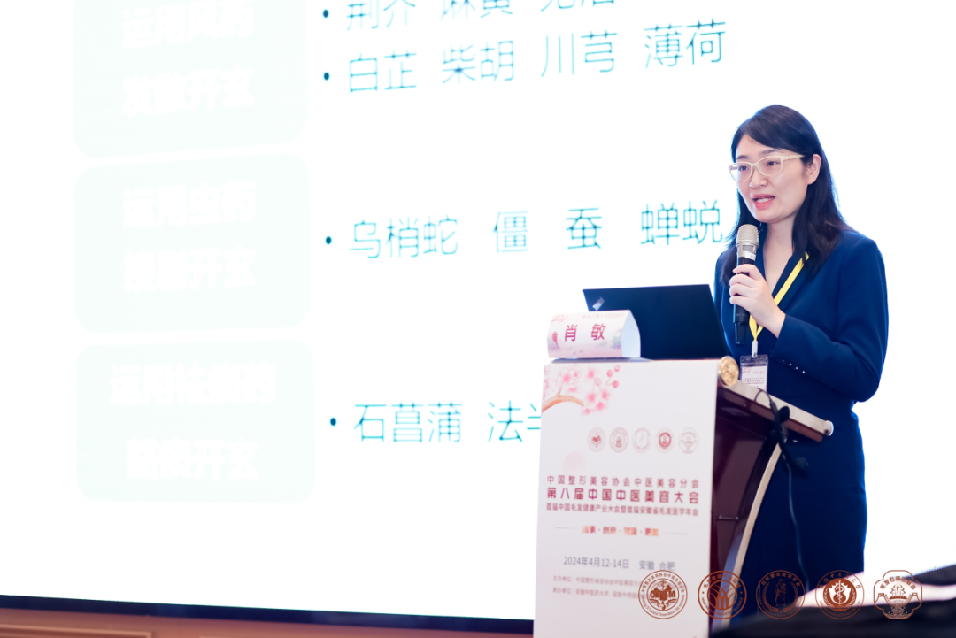 色素病(白癜风、黄褐斑)专场年会上,肖敏担任主持人并进行以《四川文氏流派治疗黄褐斑学术思想及临床经验分享》为题的专题汇报,详细分享了四川文氏皮肤流派第四代传承人艾儒棣教授治疗黄褐斑的口服经验方“艾氏化斑汤“,该方在长期的临床经验运用中,使四川文氏皮科流派和艾儒棣教授的宝贵经验得到发展流传,是中医学术传承的体现。