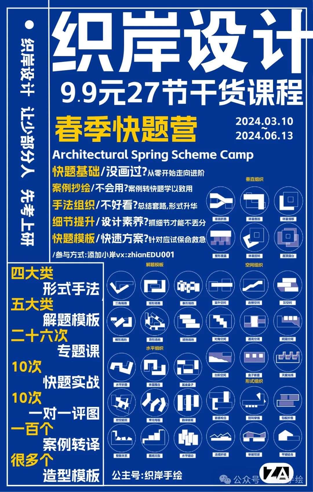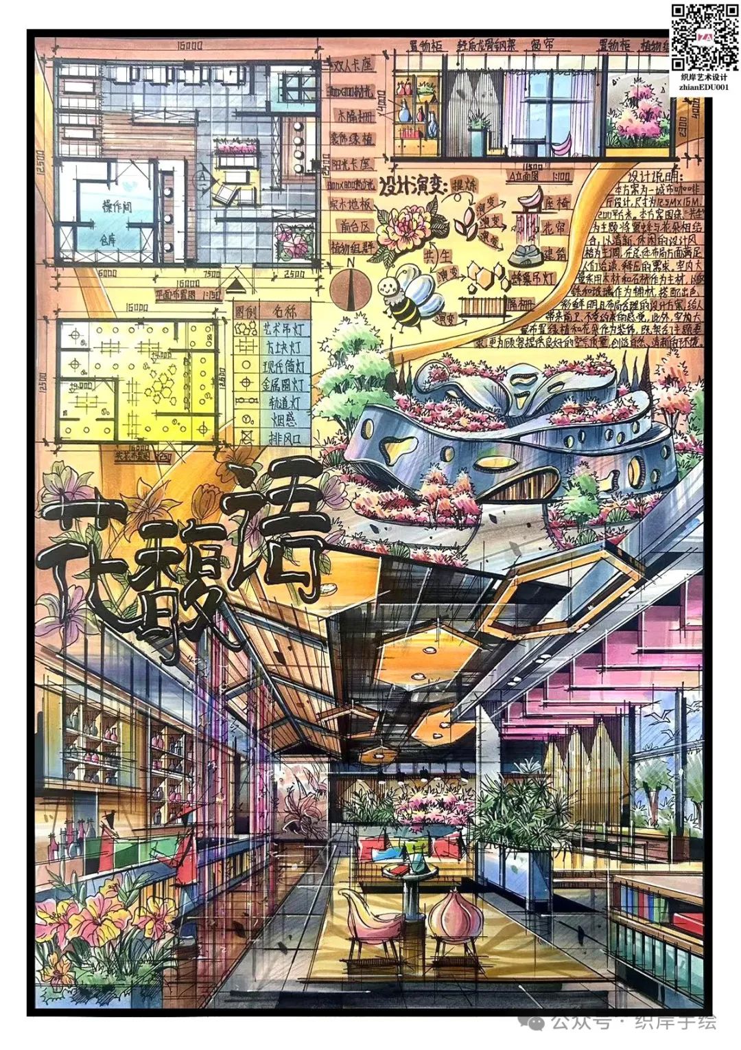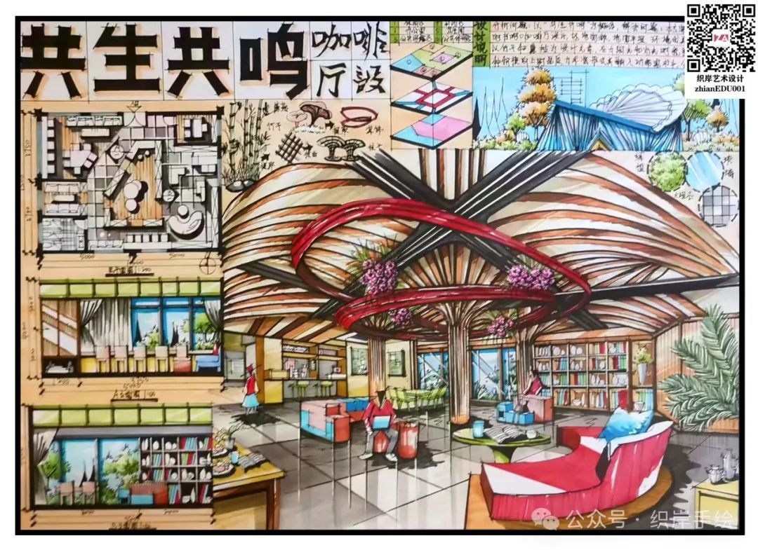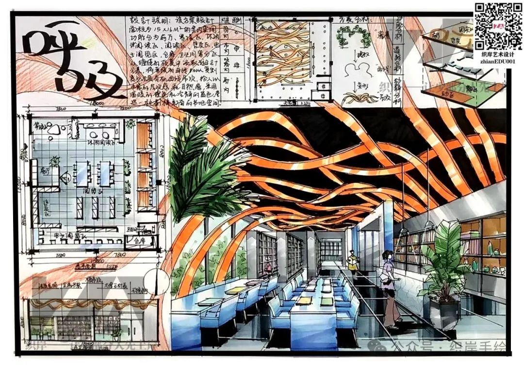方法2:小红书发图或配以下海报打卡,带话题 #织岸设计手绘# #织岸快题,保留24H,即可私信客服获取高清优秀快题~(zhianEDU001)