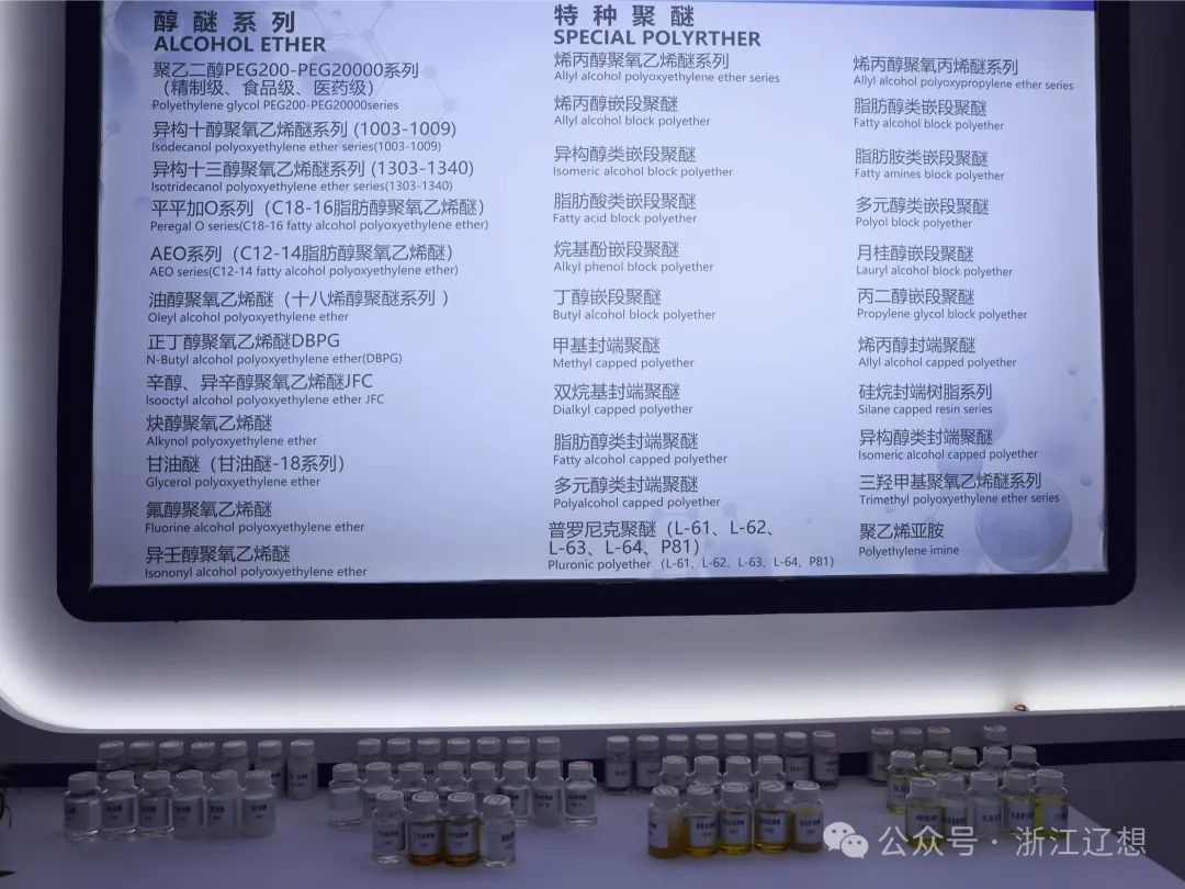 浙江辽想新材料科技有限公司成立于1987年,前身为绍兴市宇洲化工有限公司,具有年产20万吨特种表面活性剂系列和10万吨印染助剂系列的生产能力,现有“有机硅新材料改性用高性能聚醚、高端润滑油及金属加工液用高性能合成酯及特种聚醚、节能环保涂料用高端功能性表面活性剂、环保水处理用新型高效表面活性剂、环保多元型聚羧酸减水剂用高分子聚醚、纺织印染助剂用绿色新型表面活性剂、特种纤维用功能性纺丝油剂、复合新材料用高性能多用途表面活性剂、个人护理用生态安全型高端表面活性剂、农化助剂用绿色高效表面活性剂、高端环保新材料粘合剂用功能性树脂、造纸化学品用生态功能性表面活性剂、油田化学品用特种高分子表面活性剂、高端电子化学品”等十六大版块,是目前国内品种较全、规模较大、科技含量较高的特种表面活性剂领先企业。