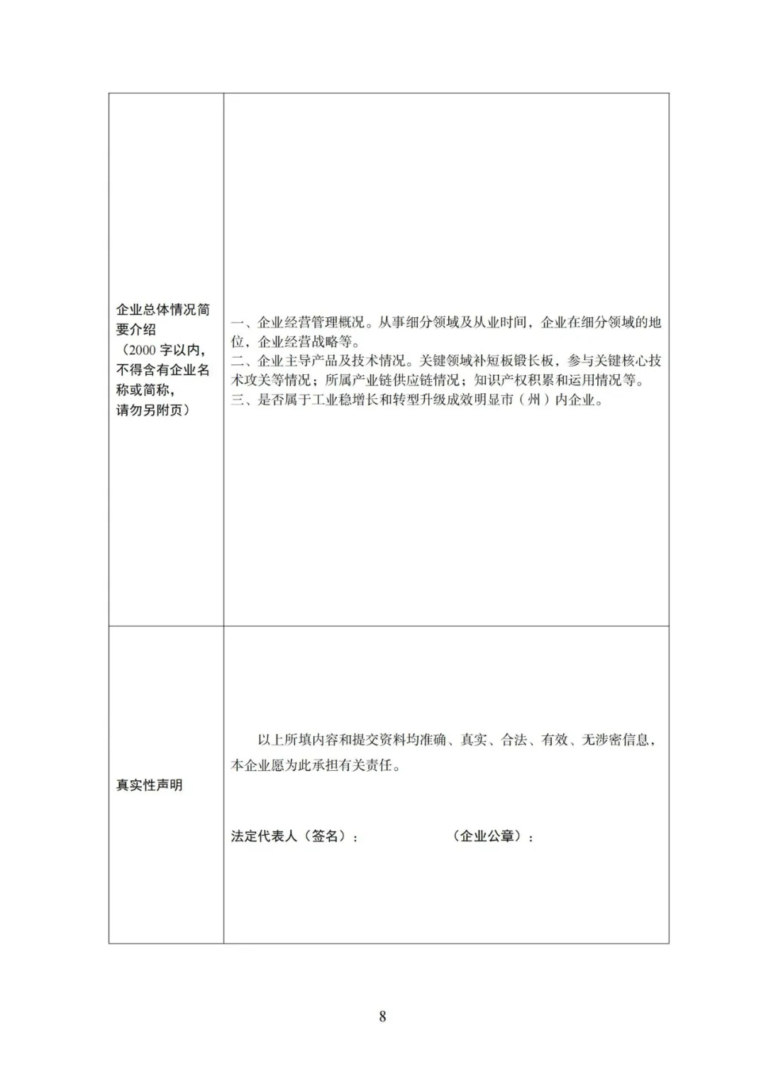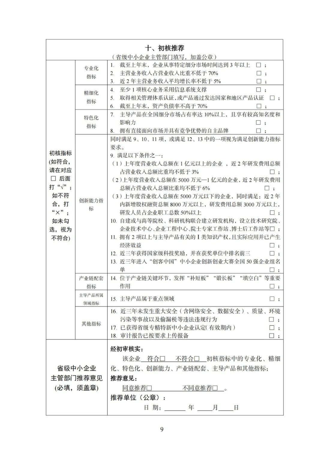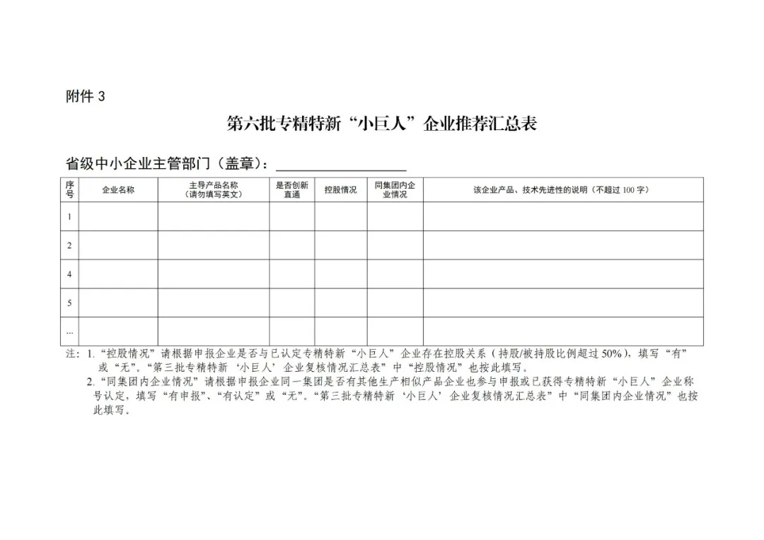 (二)要择优组织符合条件的企业填写“第六批专精特新‘小巨人’企业申请书”(附件1)或“第三批专精特新‘小巨人’企业复核申请书(附件2),并结合工作实际提出佐证材料要求,初审核实后提出推荐意见。