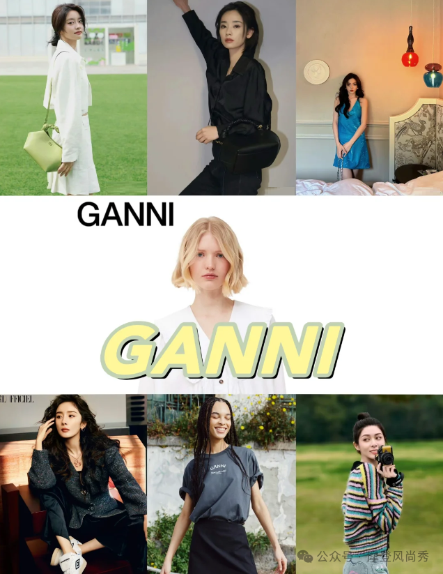GANNI,这个总部位于哥本哈根的品牌,以其极简的设计风格,个性的俏皮元素,以及丰富的色彩搭配,形成了独特的时尚风格。其T恤、娃娃领和牛仔靴等单品,深受女明星们的喜爱。