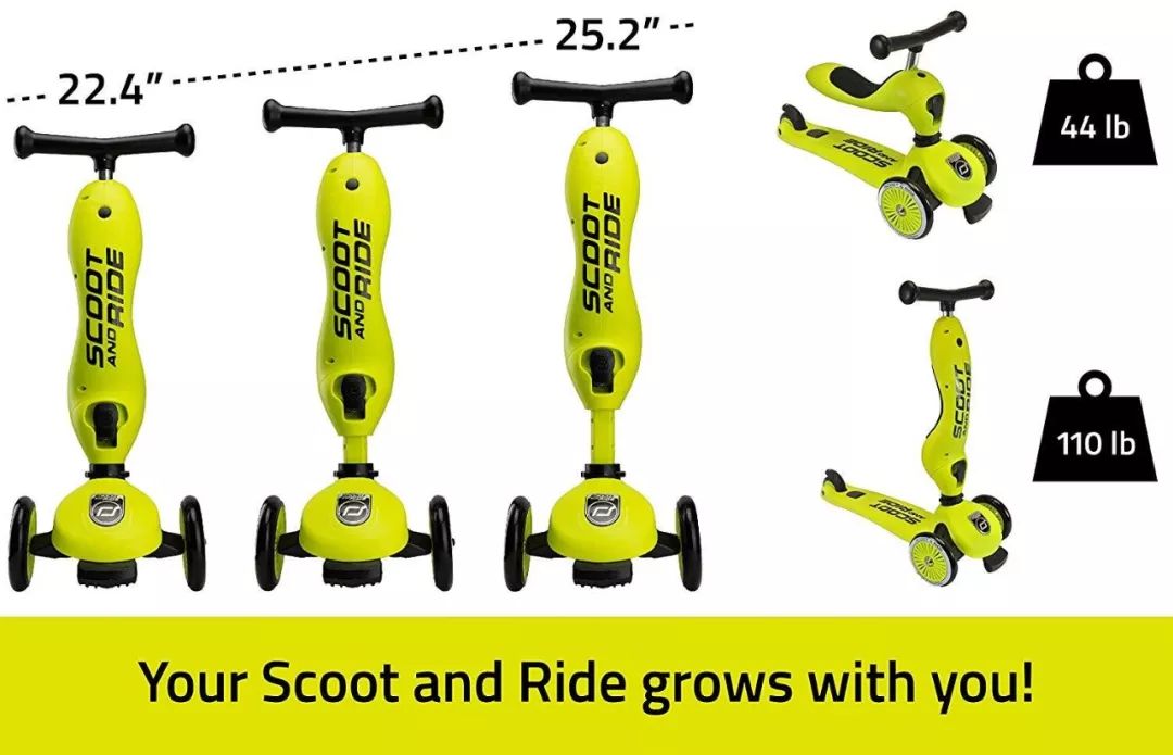 这款滑板车也是二合一设计的,获得过2018 mom’s choice的金奖,1到5岁的宝宝都能玩。车把手的高度可以调节,承重范围也很大,最大承重到110磅。