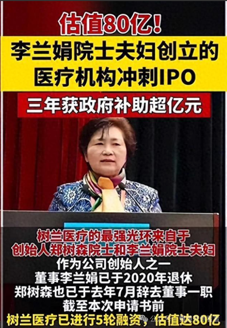 到了2020年疫情爆发时,李兰娟院士因频繁出现在公众视野,其与树兰医疗的关系也随之浮出水面,引起一片热议。面对舆论压力,李兰娟于同年12月辞去了树兰医疗董事长职务,交棒给他们的儿子郑杰。这位郑杰,本科读的是计算机,研究生专攻工商管理,显然具备一定的商业运营头脑。接班后,他更是动作频频,积极融资,几度尝试推动公司上市,一副誓要将家族企业推向新高度、守护好这份家族财富的架势。