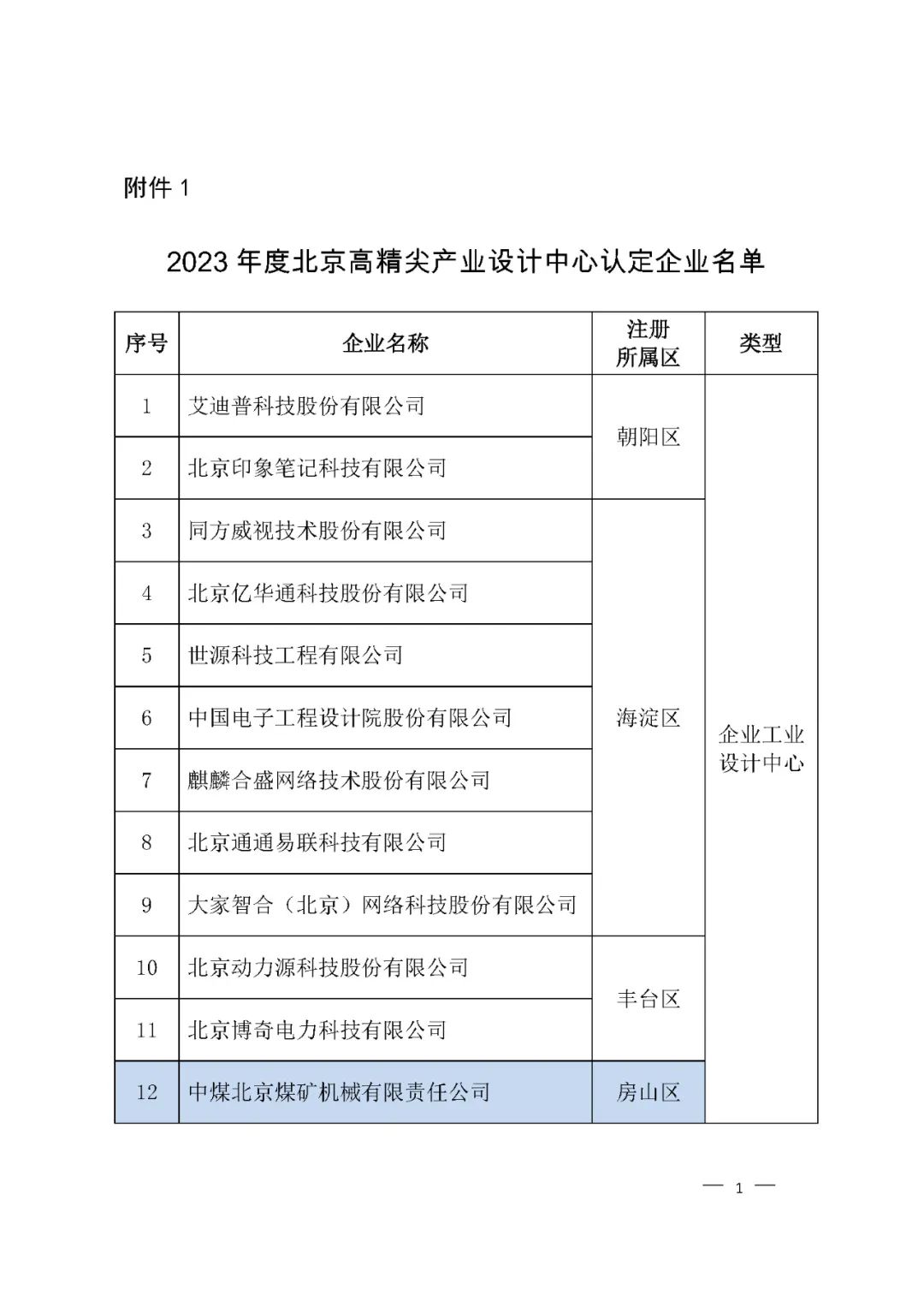 根据《北京高精尖产业设计中心认定管理办法》有关要求,经申报、初审、评审、公示等程序,我局认定了2023年度北京高精尖产业设计中心(名单见附件),现予以公布。