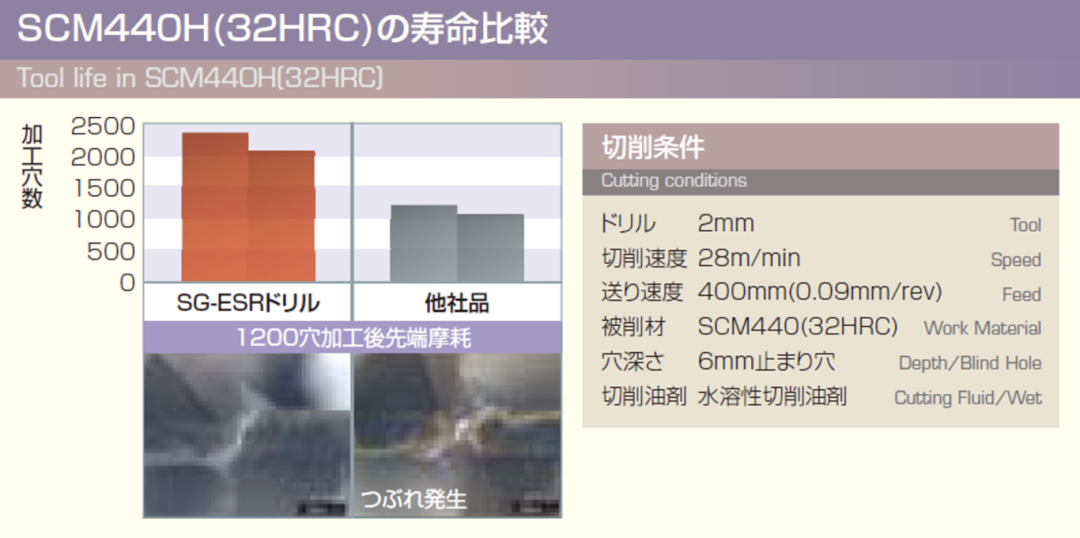 ・新开发的专用油孔超硬母材即保持了高韧性也重视耐磨性