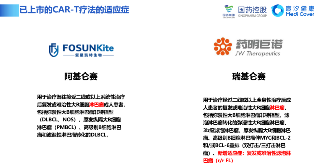 目前的两款药品针对的血液淋巴癌,也就是通常说的白血病其中的分型。