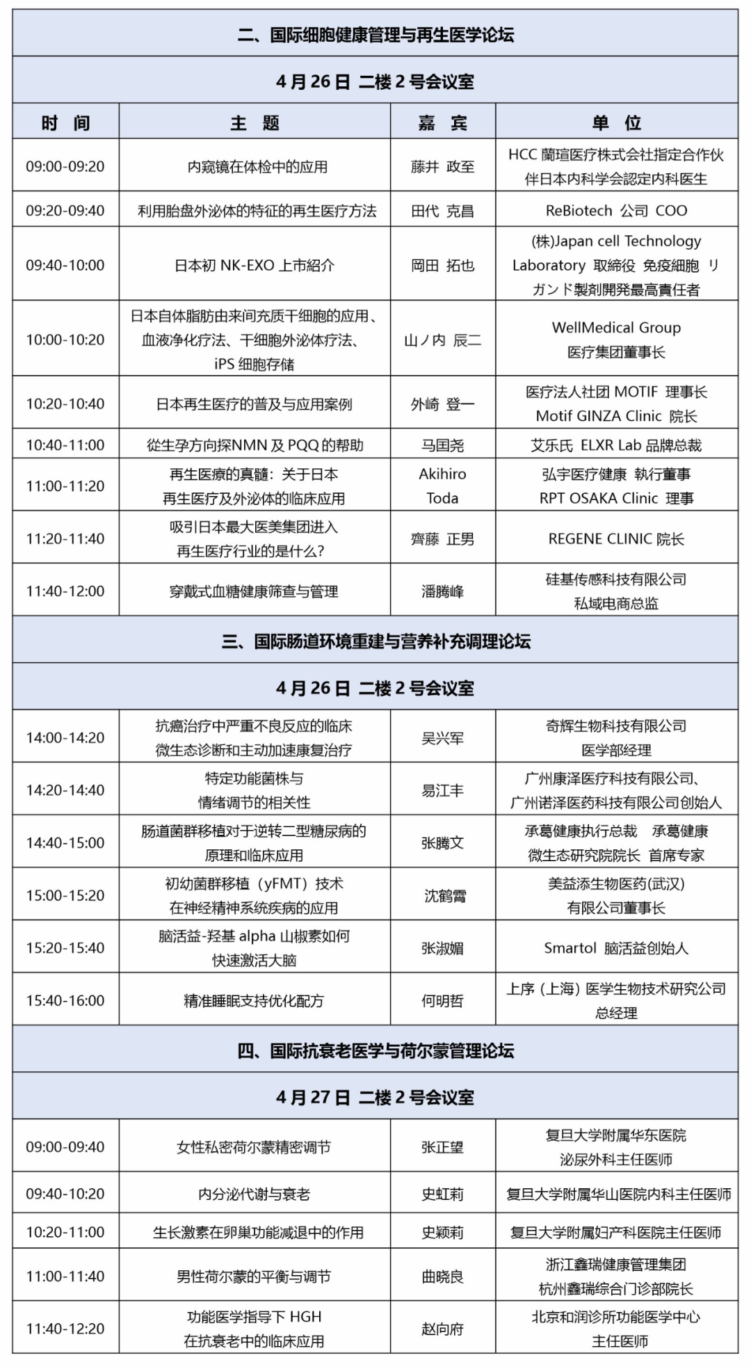 4月27日 09:00-12:20,国际抗衰老医学与荷尔蒙管理论坛