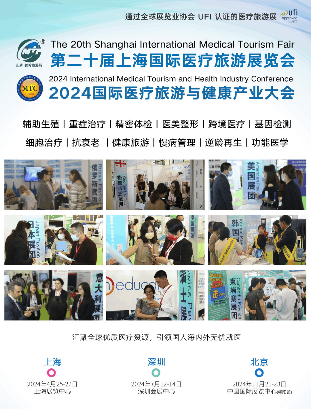 涵盖辅助生殖、精密体检、重症治疗、肿瘤治疗、细胞治疗医学、抗衰、医美整形、慢病管理、健康管理、跨境医疗、海外医疗、功能医学等,300+国际医院和机构招募渠道合作和代理,为有医疗服务需求的观众提供一站式咨询!