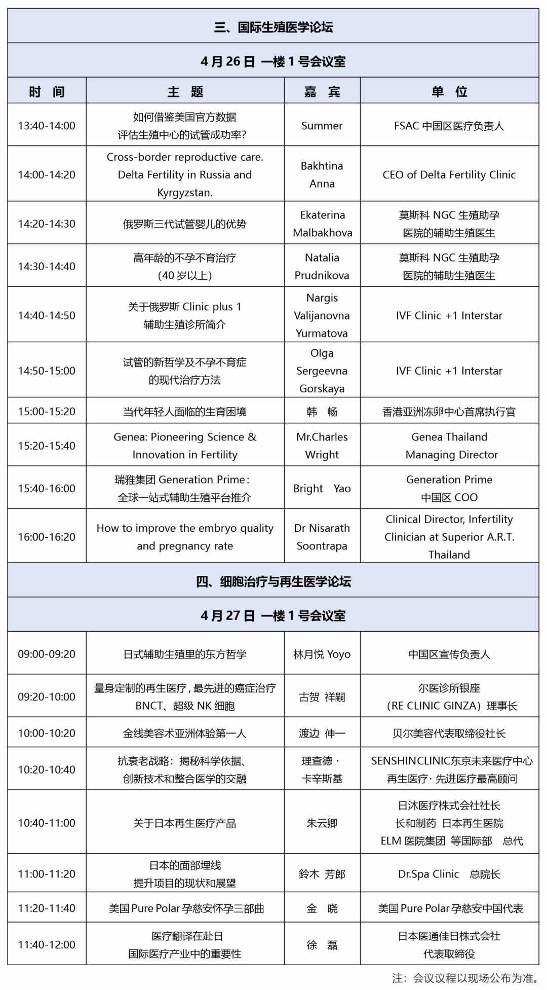 4月26日 09:00-16:20,国际生殖医学论坛