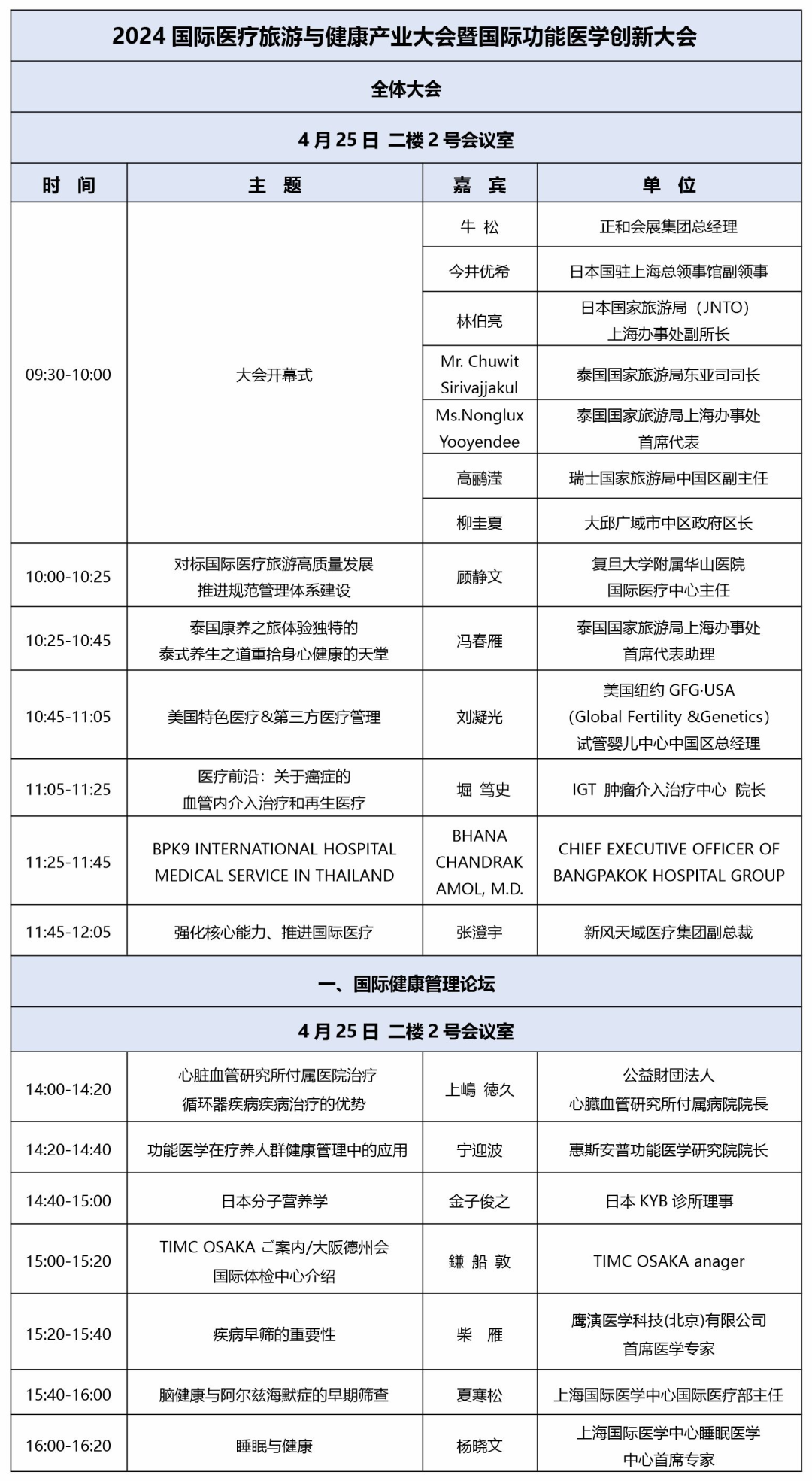 4月25日 14:00-16:20,国际健康管理论坛