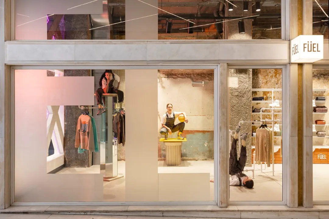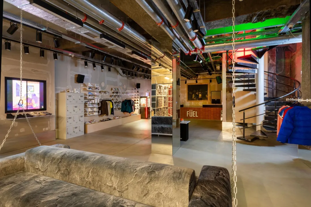 FÜEL是一家位于希腊雅典的时尚前卫运动休闲和街头服饰在线零售商。其旗舰店在设计和体验上注重社交空间的多层次性,吸引了对街头时尚有热情的进步客户群。FÜEL的客群集中在那些对最新潮流敏感、寻求独特购物体验以及重视品牌社区感的消费者。这些消费者往往是街头文化、音乐和艺术的爱好者,他们不仅追求时尚,也看重与品牌的互动和体验。FÜEL的官网有一个非常简短的介绍来描述他们的客户身份和特征——运动鞋爱好者、运动员、艺术家、音乐家、设计师、舞者、DJ、Atari 爱好者和 PS4 沉迷游戏玩家……FÜEL传达的核心就是:努力将用户联系起来,将他们聚集在一起。位于希腊雅典市中心的FÜEL新旗舰店,就完全符合这些要求。这家时尚前卫的运动休闲和街头服饰在线零售商的新店面,跨越两层,面积达480平方米,被设想为品牌进步客户群——希腊街头时尚爱好者的聚会场所。