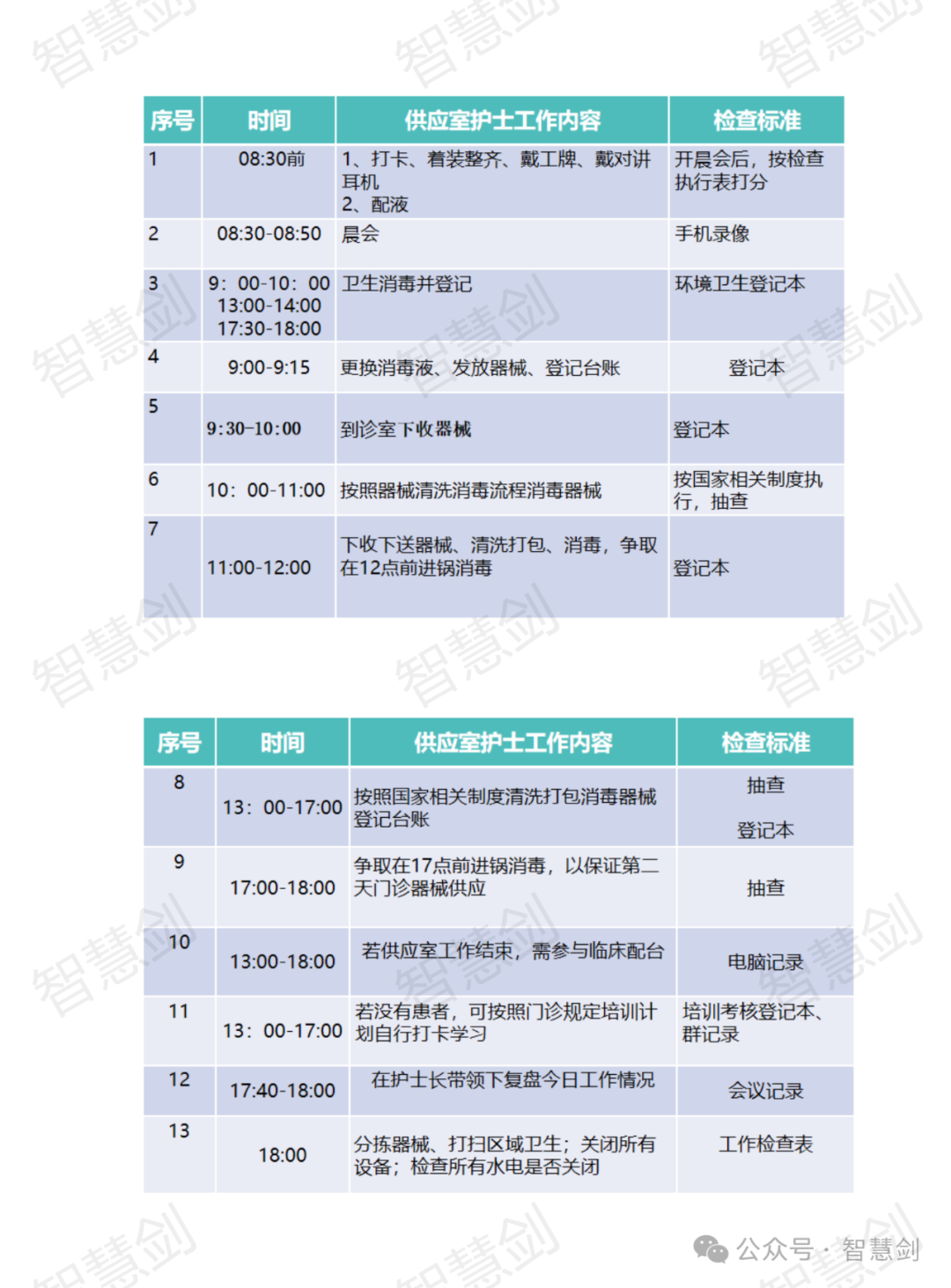 今天来给大家梳理一下供应室护士一天的工作到底是怎样的?希望这份表格对您有帮助,让管理看得见、摸得着,让小伙伴们带着表格落地,拿到你想要的结果。