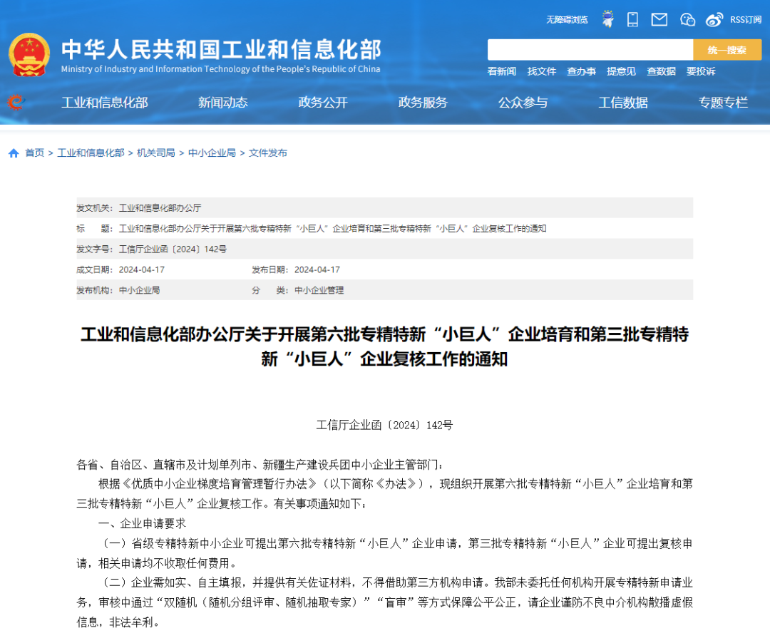 黄埔区:对获得国家工业和信息化部认定的专精特新“小巨人”企业,给予扶持奖励资金100万元;