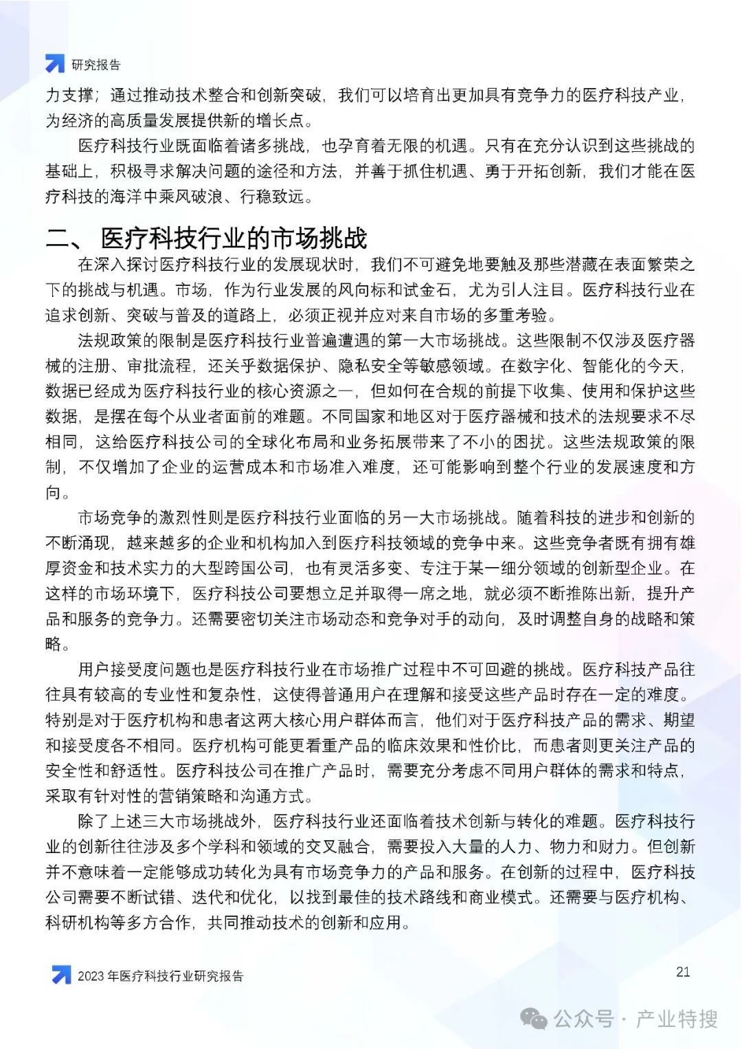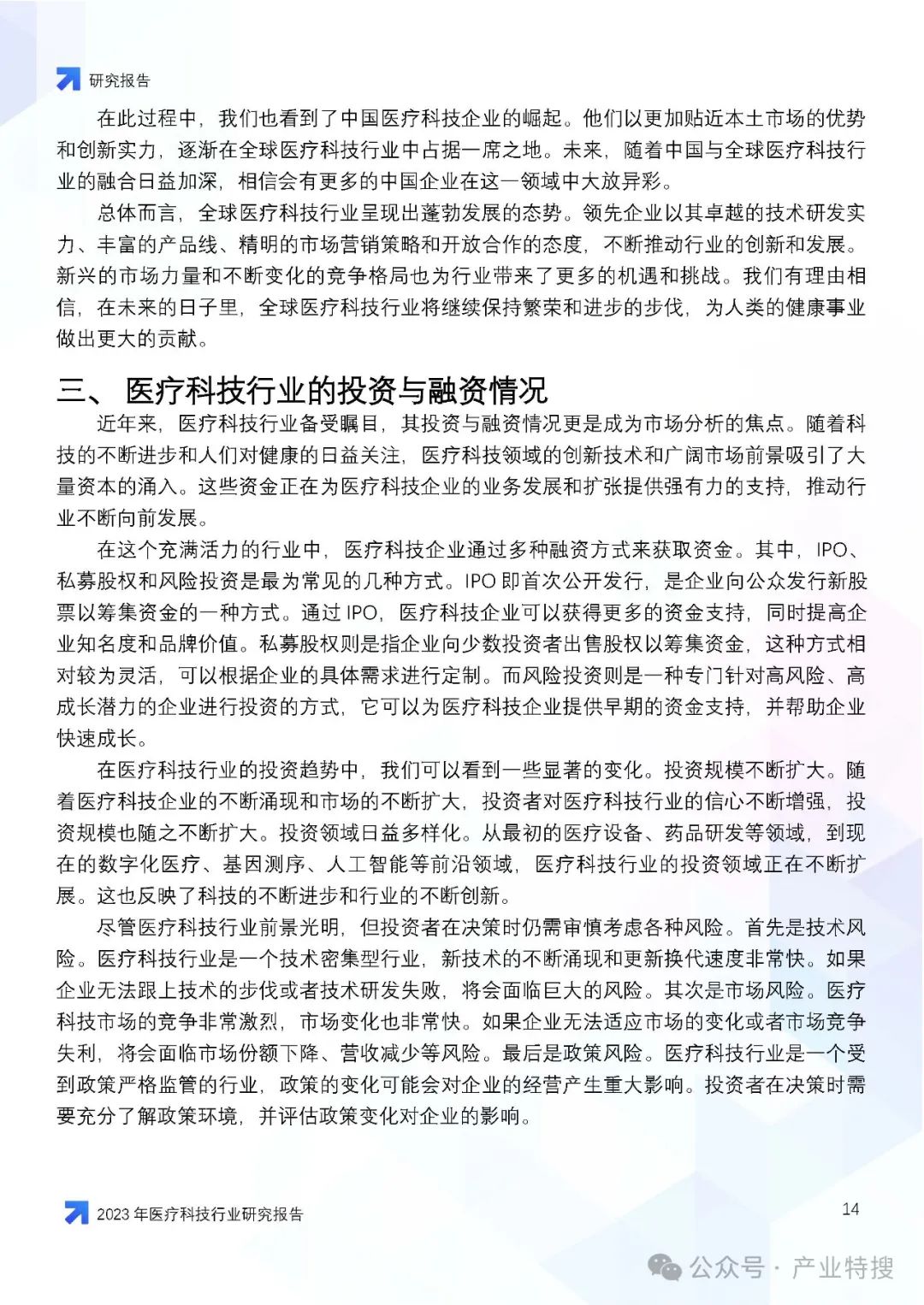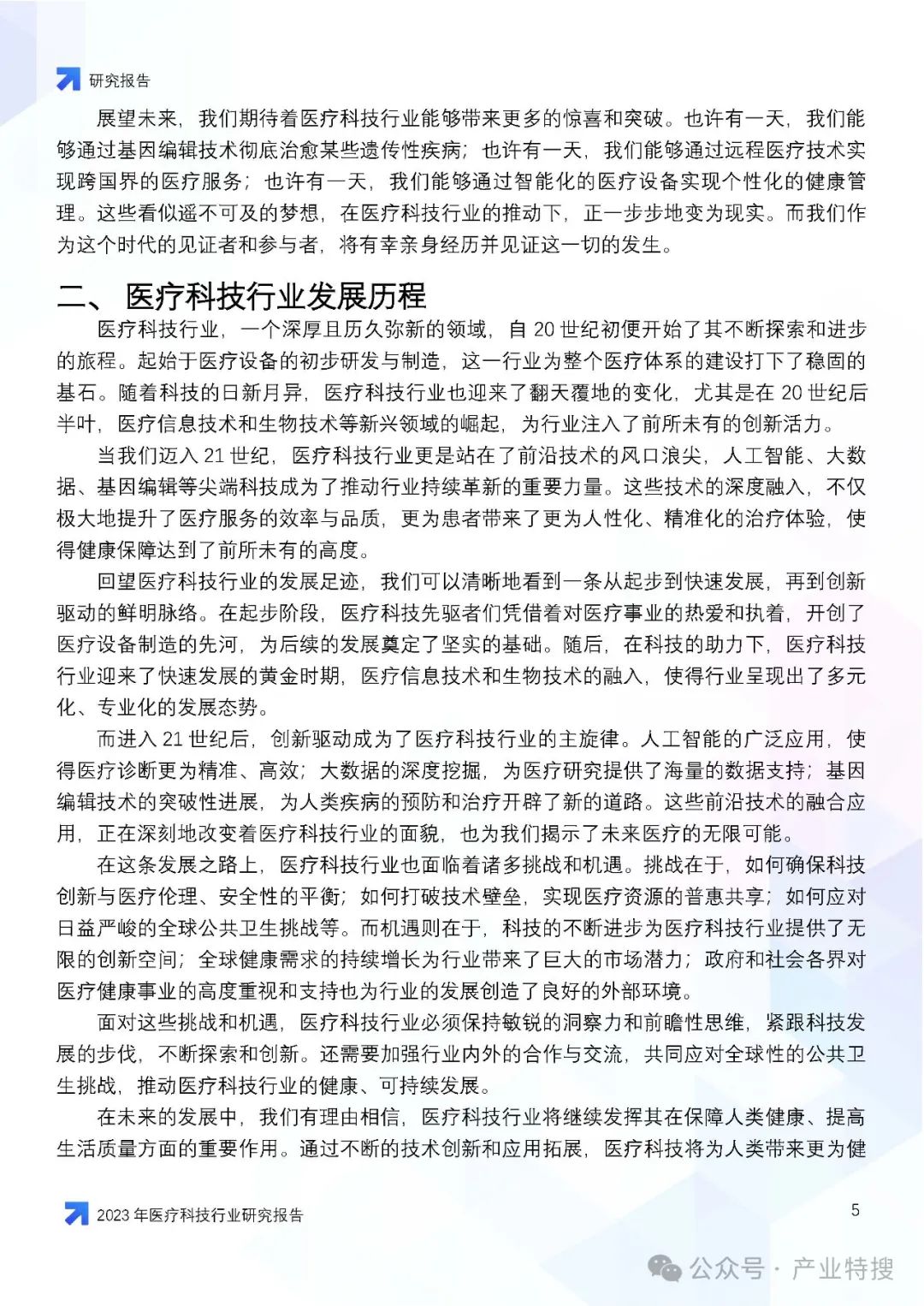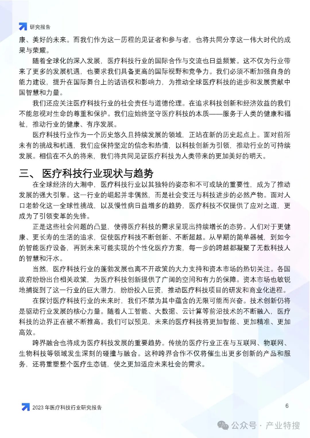 - 行业现状与趋势:医疗科技行业正面临人口老龄化、慢性病增多等社会问题,同时也因技术创新和社会变迁而迎来发展机遇。