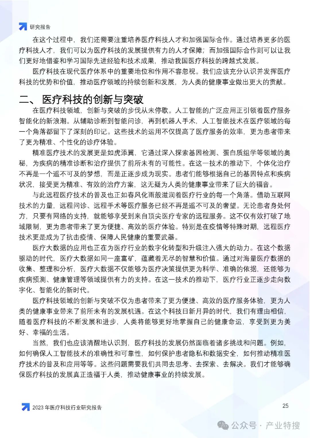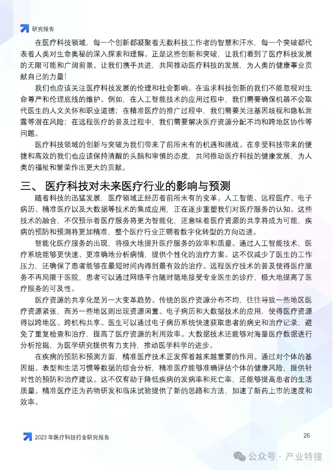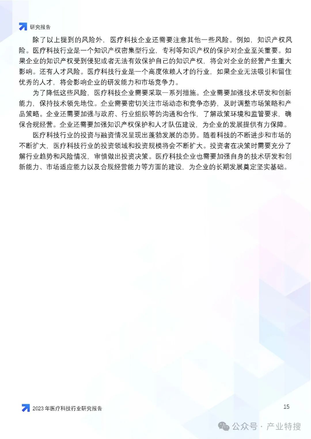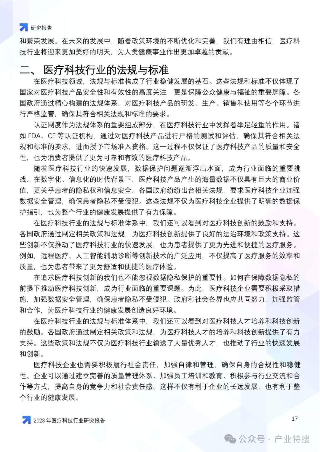 - 行业现状与趋势:医疗科技行业正面临人口老龄化、慢性病增多等社会问题,同时也因技术创新和社会变迁而迎来发展机遇。