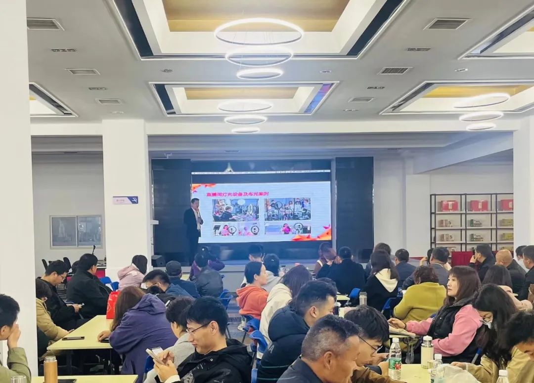 培训采取理论授课和实操训练相结合的方式进行,在这三天课程中,学员们系统地学习了电商直播的相关知识和技能,包括直播策划、直播技巧、产品推广、客户服务等方面。讲师上课由浅入深,由易到难,从短视频账号运营,到短视频拍摄剪辑,再到直播间搭建与运营等实操技能都有涉及,培训现场座无虚席,互动热烈。