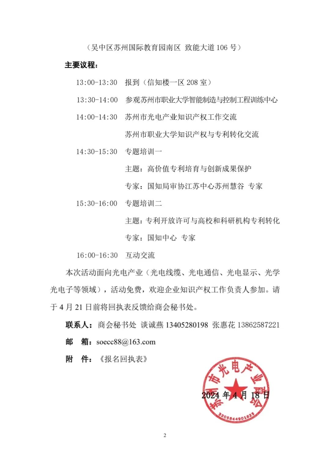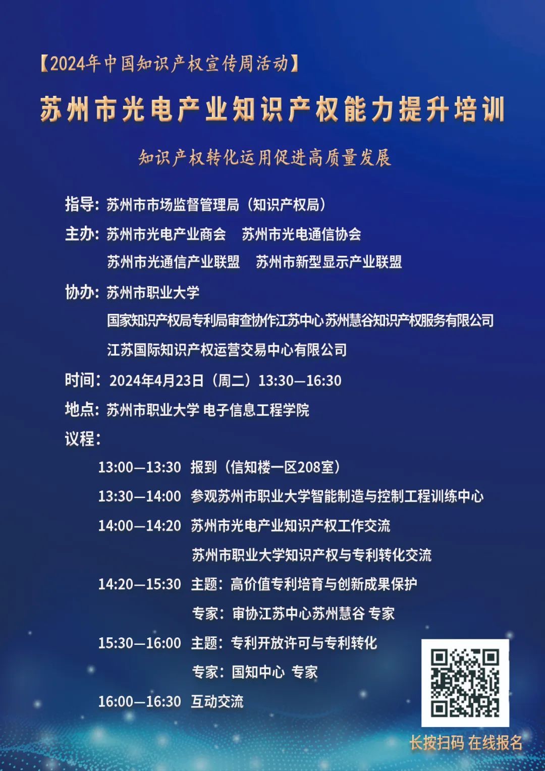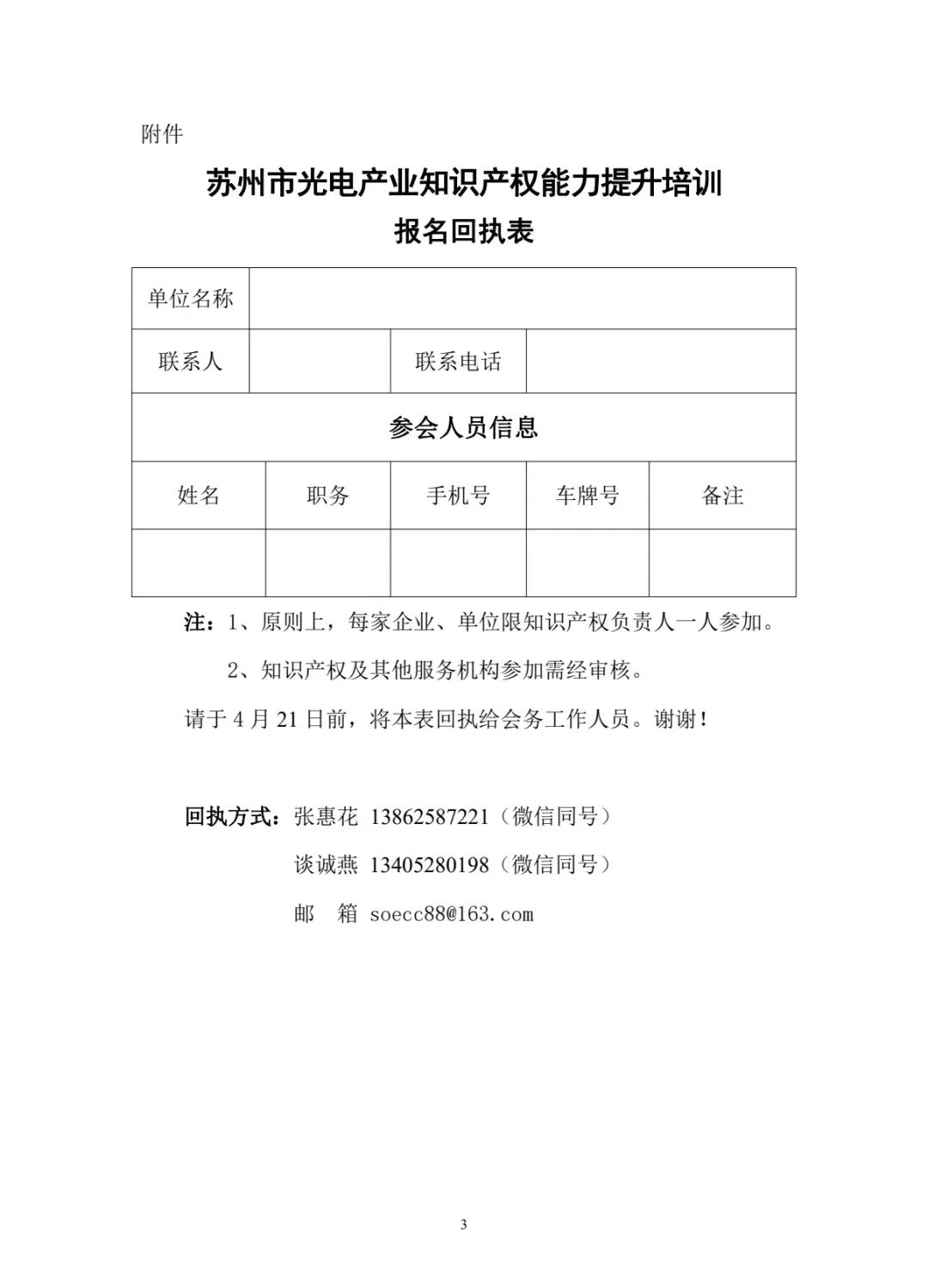 关于举办苏州市光电产业知识产权能力提升培训的通知