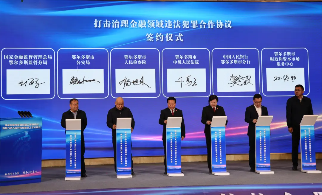 会上,市人民检察院第三检察部主任郭荣展示了鄂尔多斯市涉案企业合规改革工作成果;鄂尔多斯农村商业银行股份有限公司党委书记 、董事长李文君作企业合规主体典型发言。市检察院、市法院、市公安局、市人行、市金监局、市财政和资本市场服务中心举行《治理金融领域违法犯罪合作协议》签约仪式。