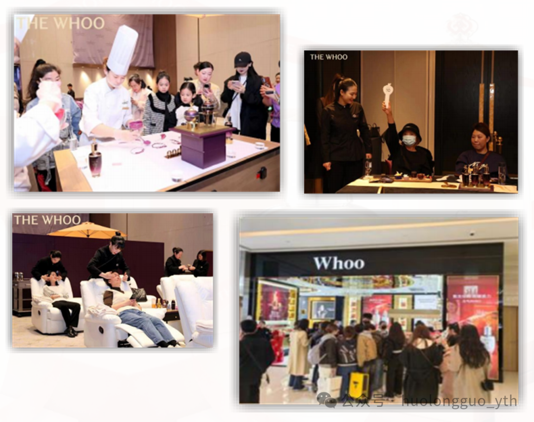 宣传推广期间,通过集团全渠道中心、各门店公众号推文、微商城首页、微信圈群等;WHOO品牌通过微商城、小程序、公众号、视频号等全方位宣传,将顾客引流到线下,品牌通过美妆授课、限时展播、买赠、补贴代金券/活动券、生日礼等多种营促销形式,掀起顾客购买热潮。