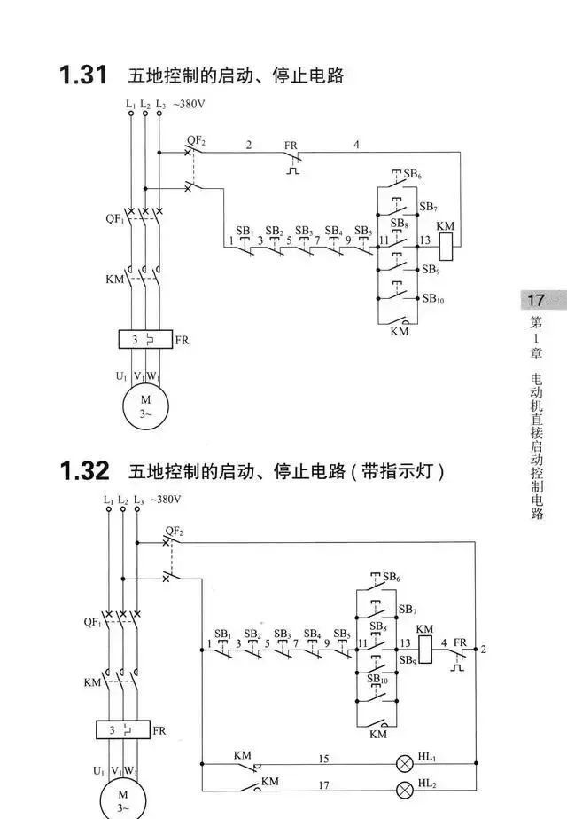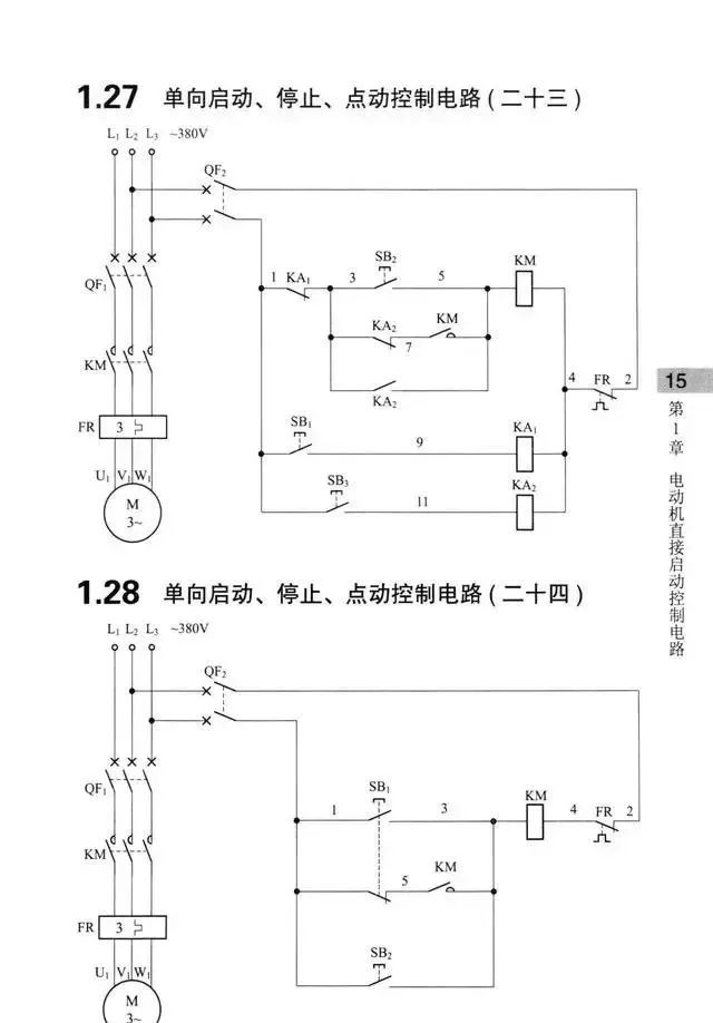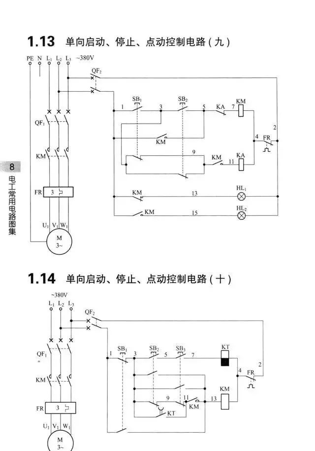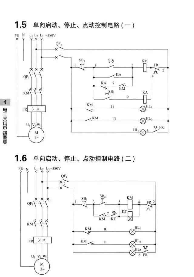这些控制电路都是380V,实际中也可能有220V、110V、36V、24V等等。有的也有交流直流之分,在这里就不一一细说了,大家可以看到这些图后,举一反三。