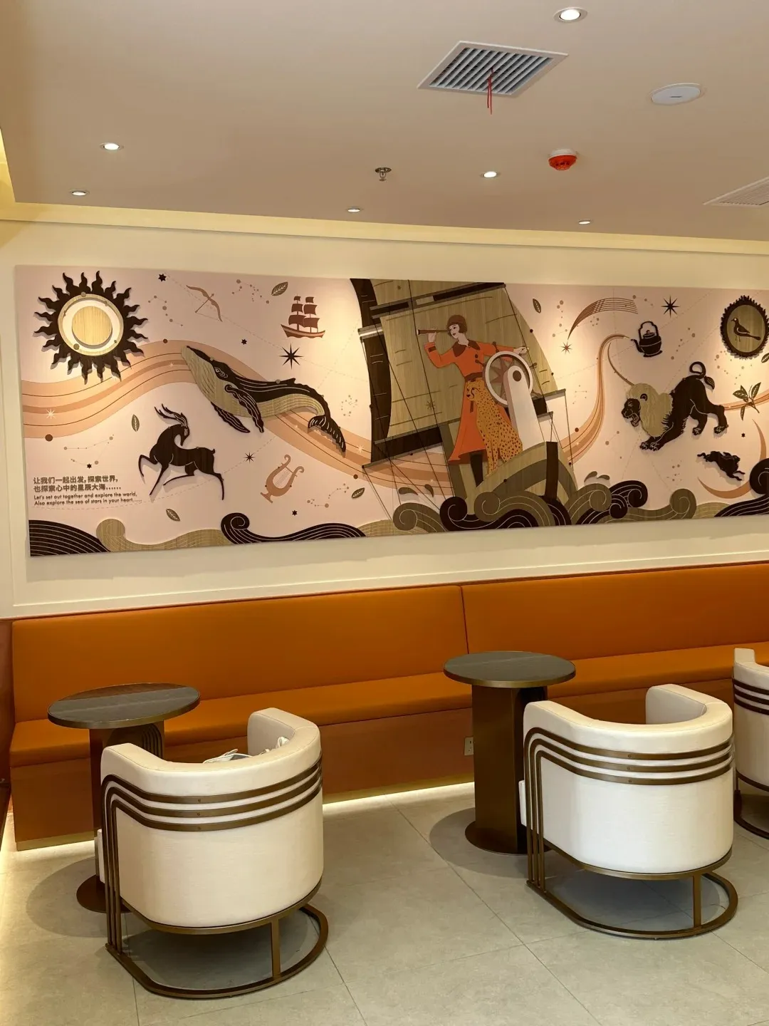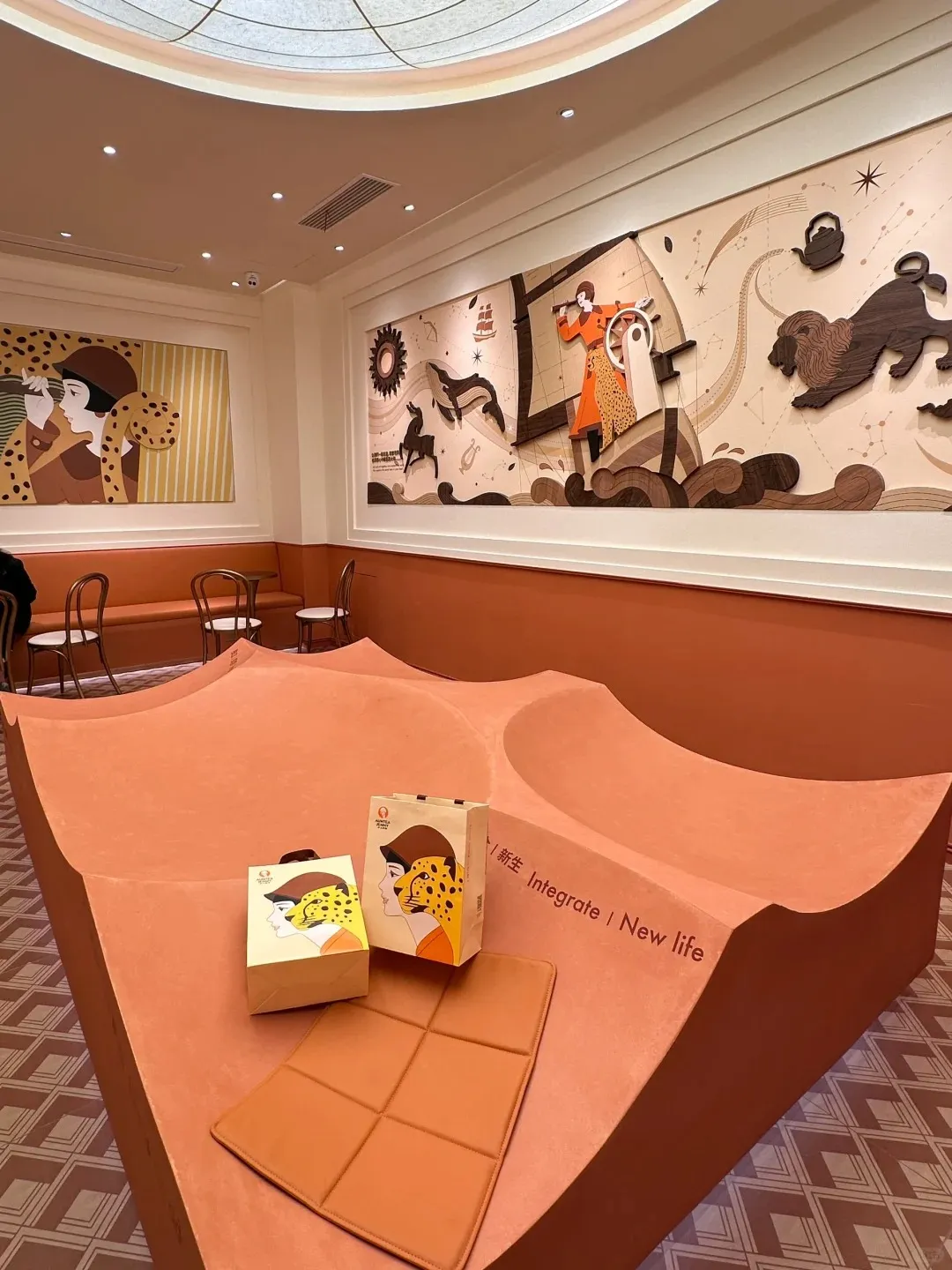 门店的装修风格,采用了大面积壁画形式,摩登女孩和充满野性的豹子、狮子、麋鹿等元素,繁华的都市还是遥远的丛林,给人一种复古原始的野性魅力。