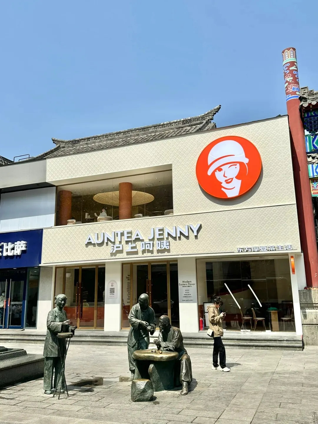 还有山东济南的芙蓉街新店内外也已经坐满了消费者。门店的右下方还显示了“东方摩登茶生活”的字样。