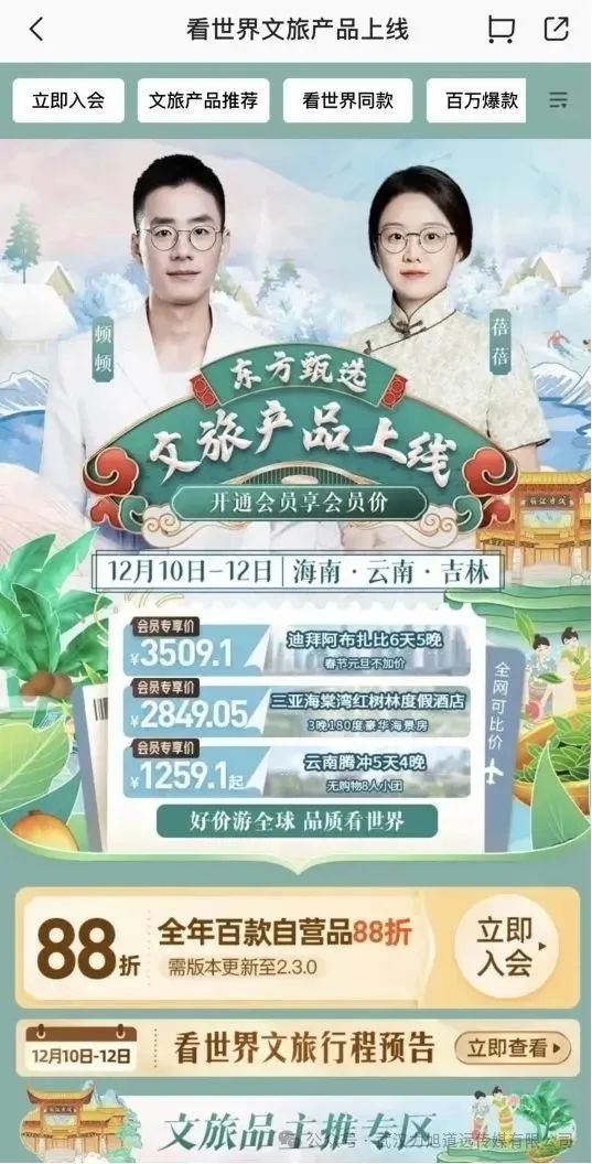 近段时间,东方甄选在文旅业务领域的布局明显加快。与各地文旅局跨界联动,同时成功设立了多处文旅公司,并在自营App上线了当地的文旅产品。