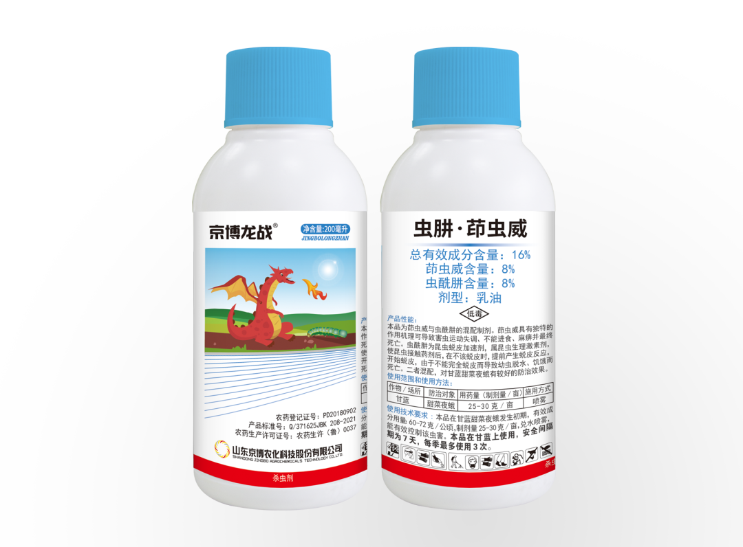 京博农化在制剂开发和田间应用方面做出了长期的努力。公司每年根据虫情发展水平及抗性水平及时调整配方,目前拥有围绕茚虫威的6个证件组合,包括悬浮剂、乳油等剂型,复配涵盖虫卵双杀的灭幼脲、控制害虫不正常蜕皮的虫酰肼等。此外,公司还储备了氯虫·茚虫威、甲维·茚虫威、虱螨脲·茚虫威、乙基多杀·茚虫威等一系列证件组合。