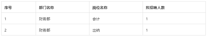 (二)招聘岗位:财务部出纳 人数:1人